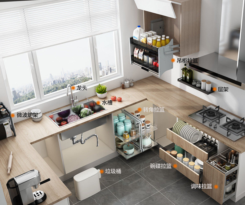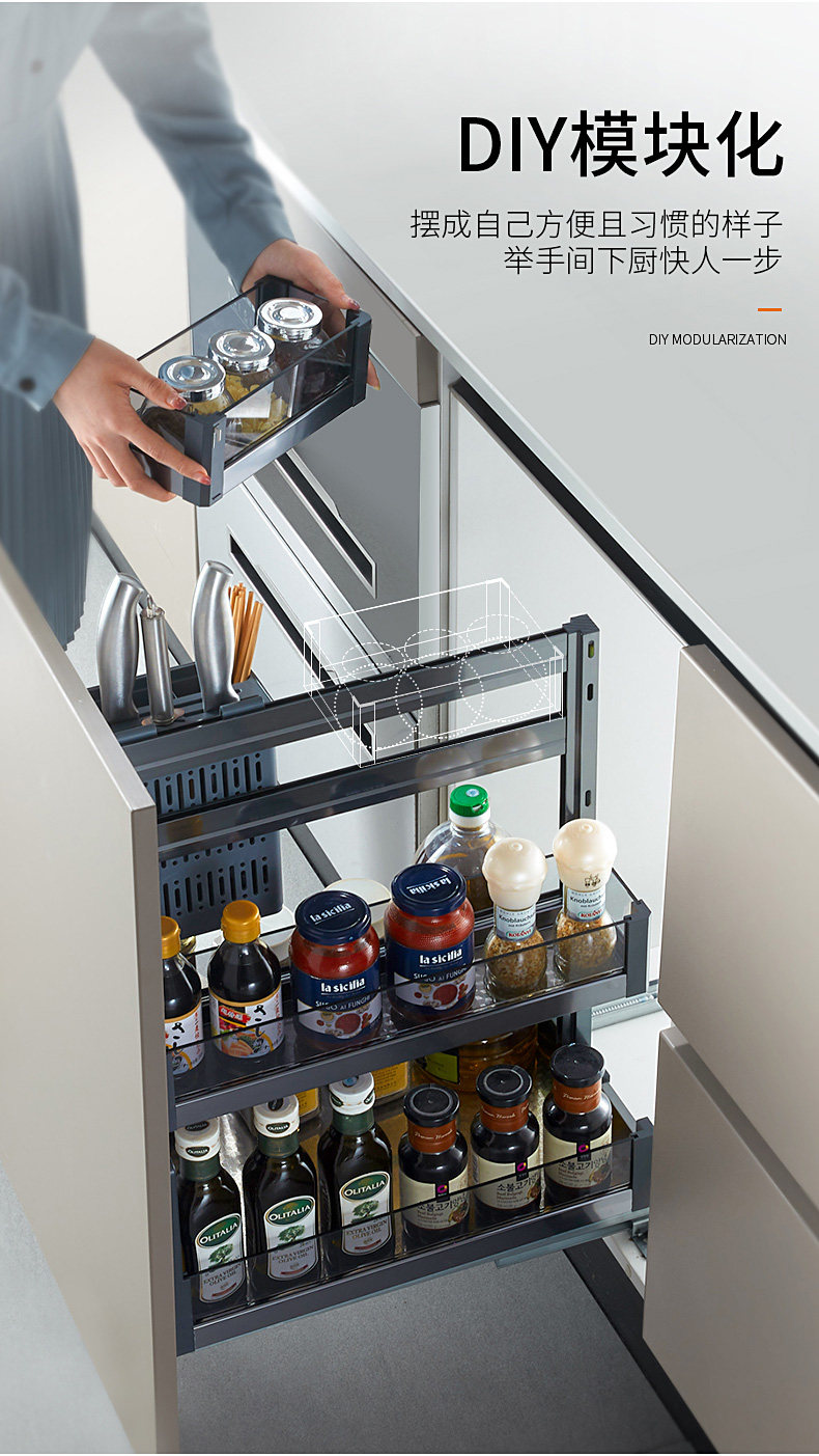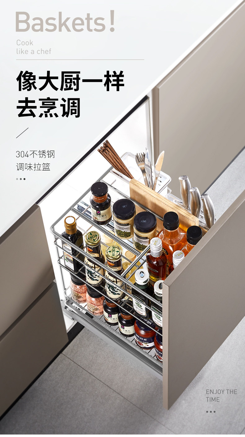Кабела корзина кухонная шкаф приправы 304 из нержавеющей стали двойной ящик