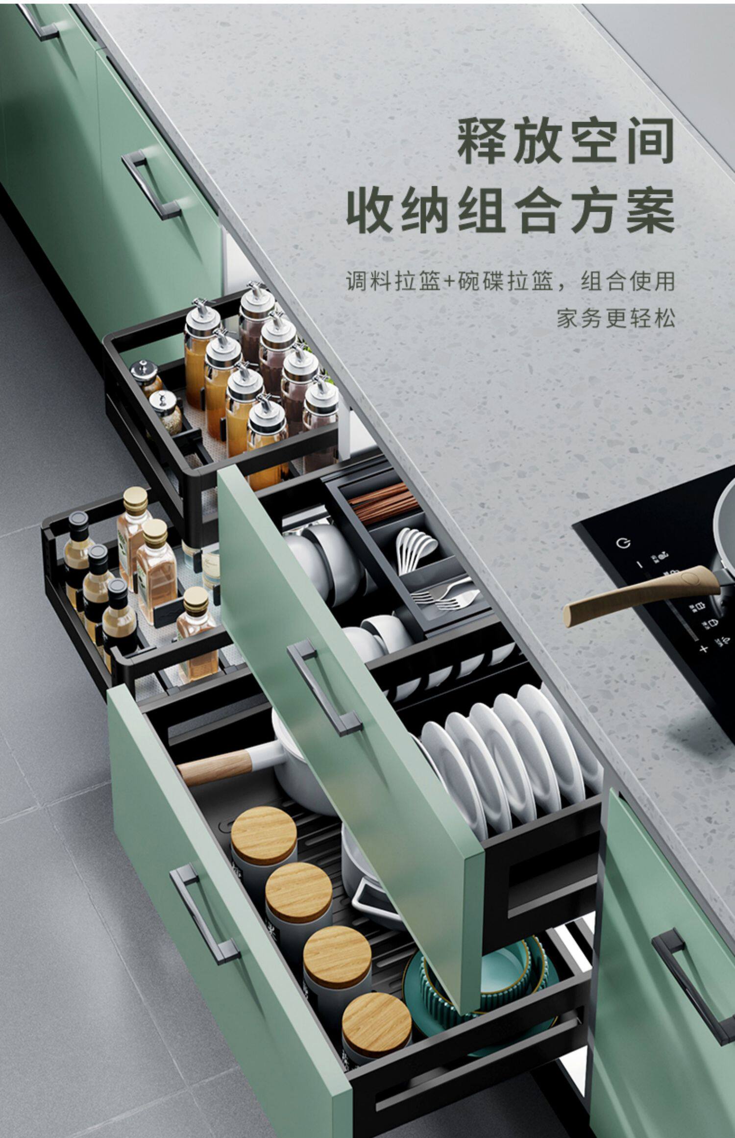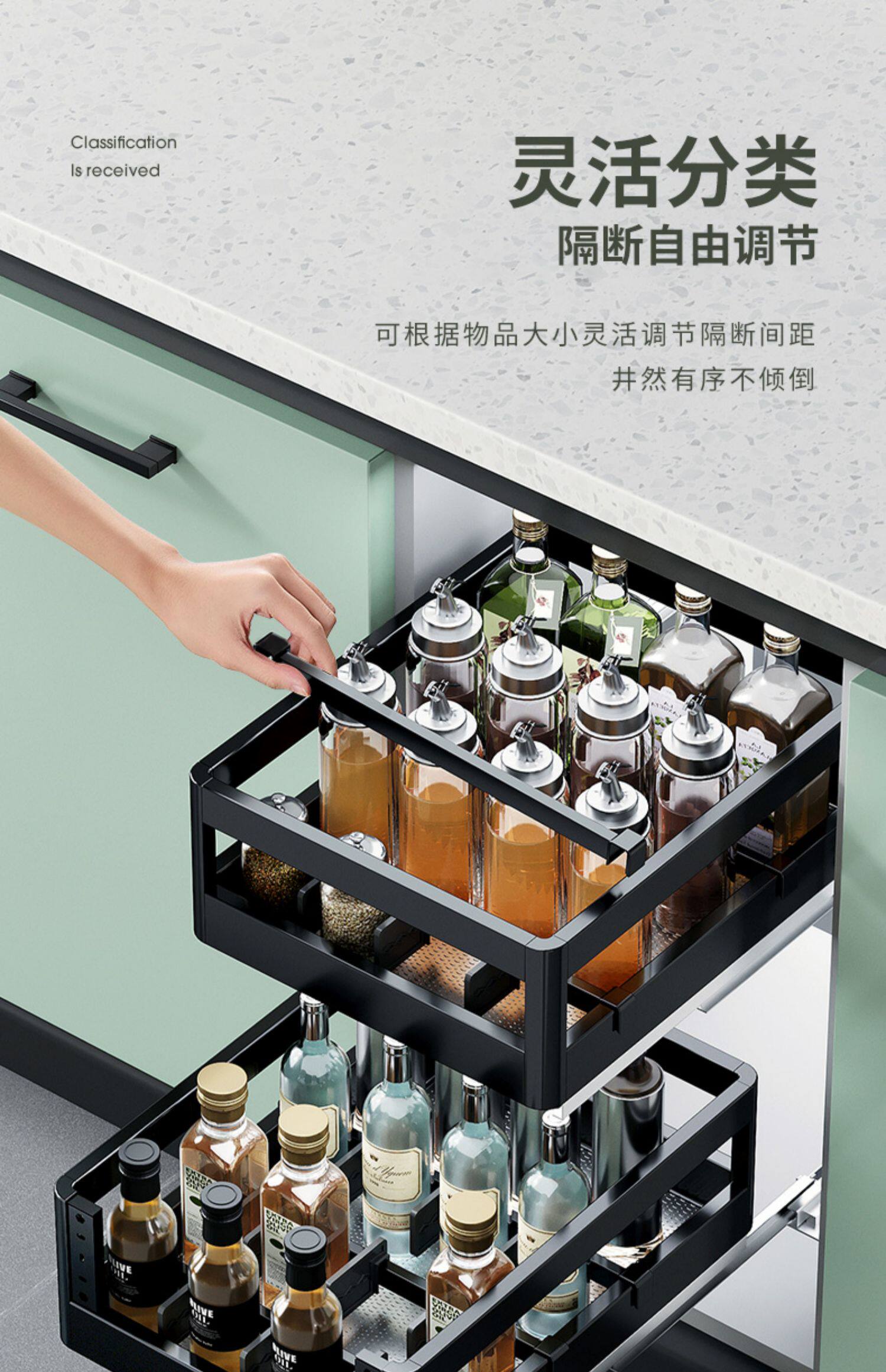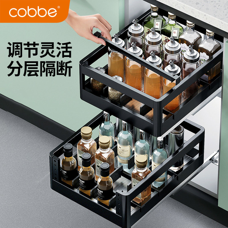 Carba приправа для рисования корзина ящики кухонная шкаф реконструкция двойной слой из нержавеющей стали кухонный шкаф приправы приправы натягивать синий ящик