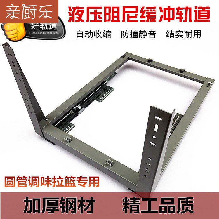 Кухонная корзина, демонстрирующая раздвижные рельсовые нижние три -сечение демпфирующей дорожки.