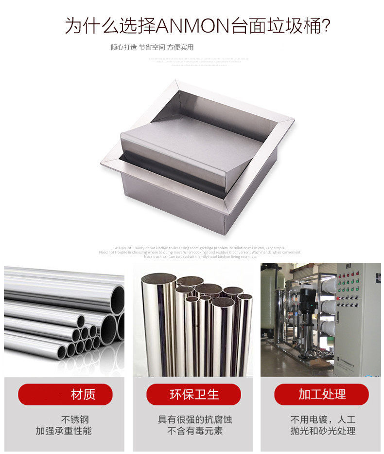 Гигиеническое квадратное мусорное ведро из нержавеющей стали для домашнего использования