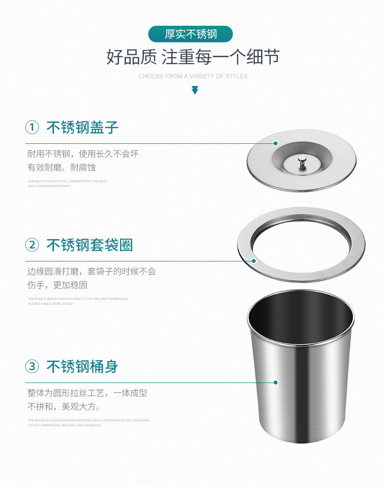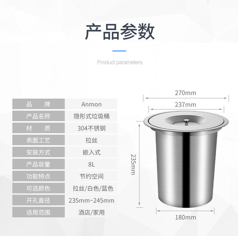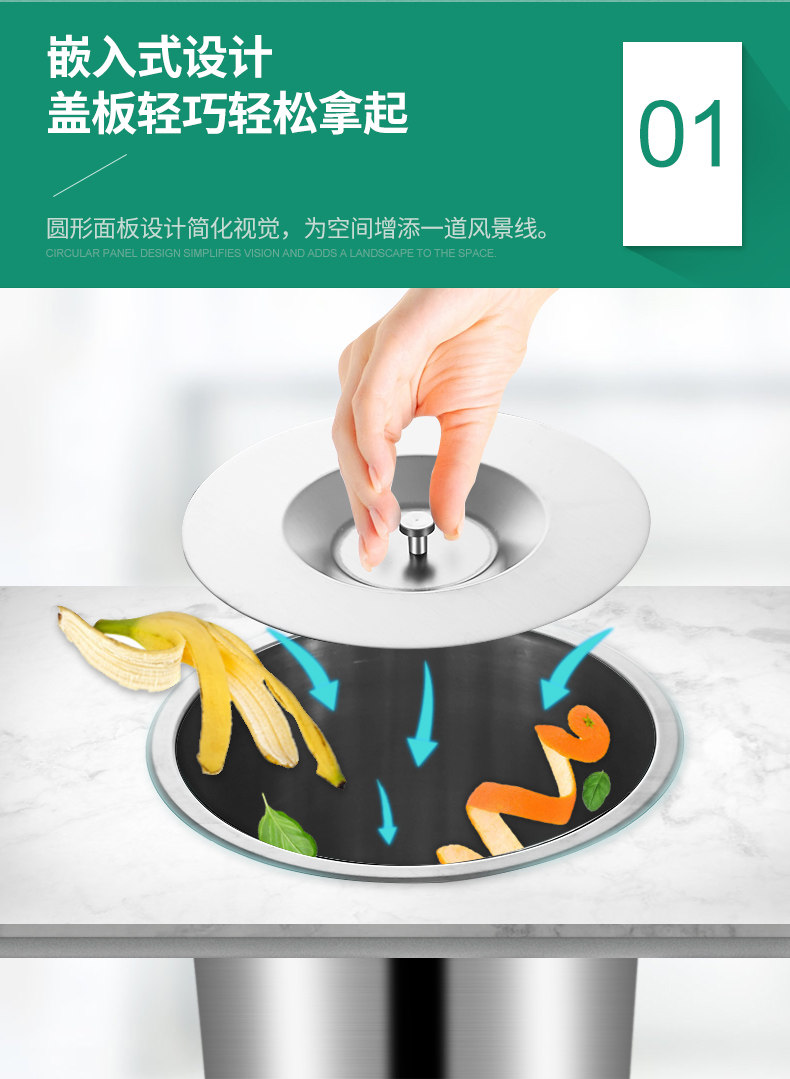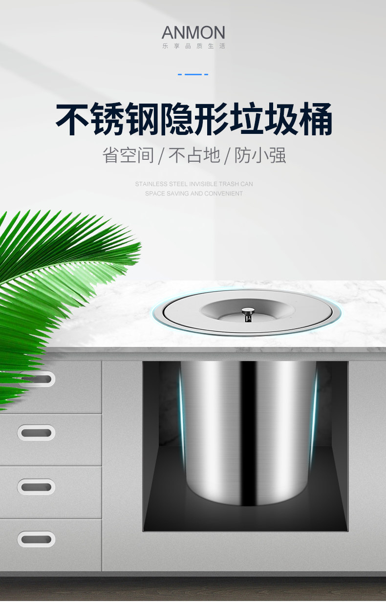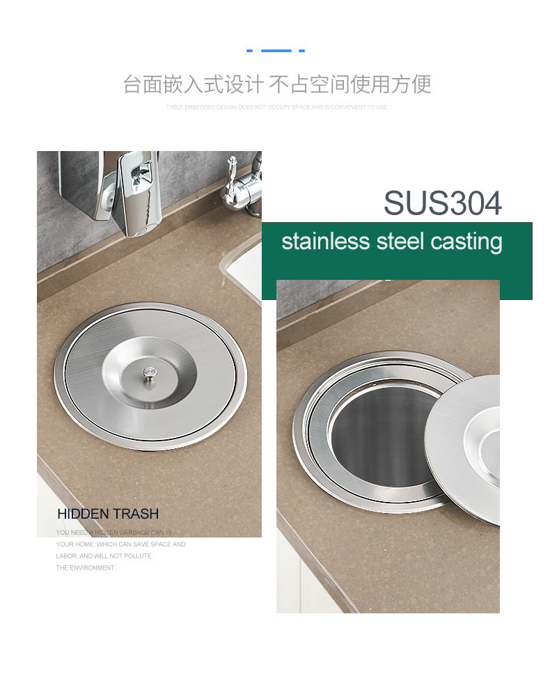 Встроенное мусорное ведро из нержавеющей стали, гигиеническая система хранения, нержавеющая сталь AISI 304