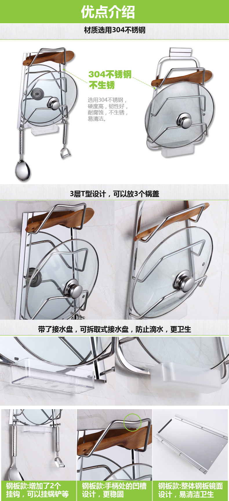 Подключение стойки для крышки горшка 304 Стенная стена из нержавеющей стали висит небрежная доска для расмечательной доски