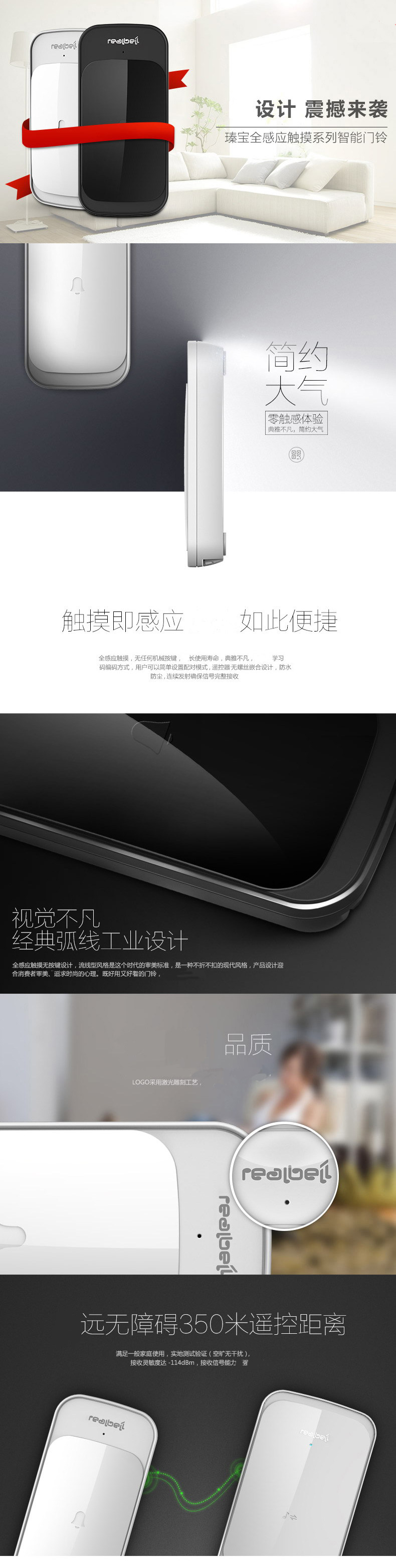 realbell Домохозяйства беспроводной двери, один перетаскивание, перетаскивание, два водонепроницаемы