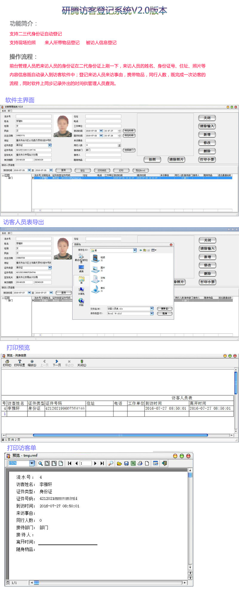 研腾 Система идентификации посетителей второго и третьего поколения. Система управления посетителями. Программное обеспечение для регистрации личности при входе и выходе.