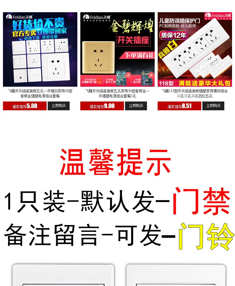 飞雕 Переключатель, кнопка, универсальная световая панель