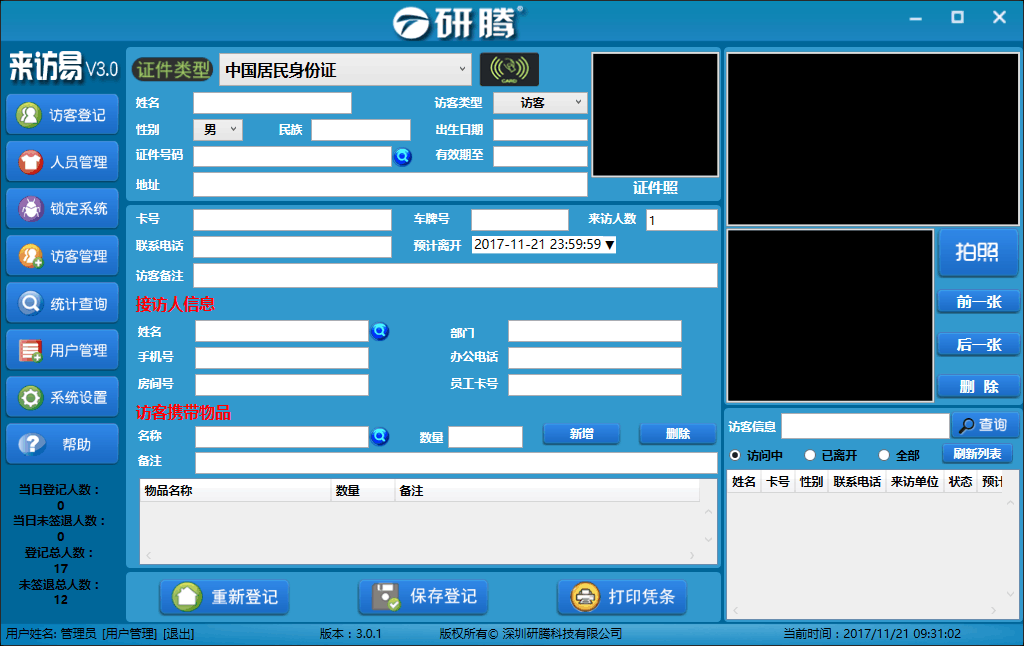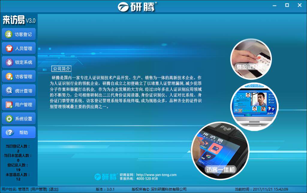 研腾 YT-F1 Система регистрации посетителей Система управления регистрацией посетителей Швейцар Программное обеспечение для автоматического управления регистрацией