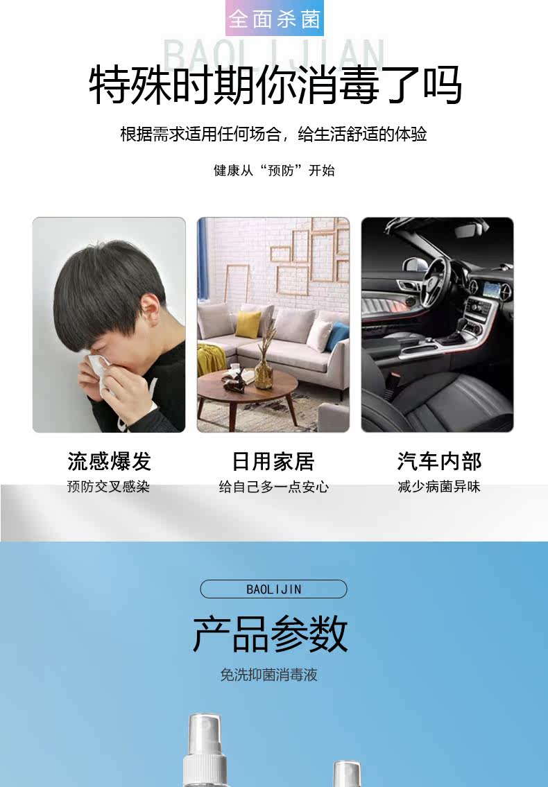 Антибактериальное дезинфицирующее средство, портативный спрей для домашнего использования, 60 мл
