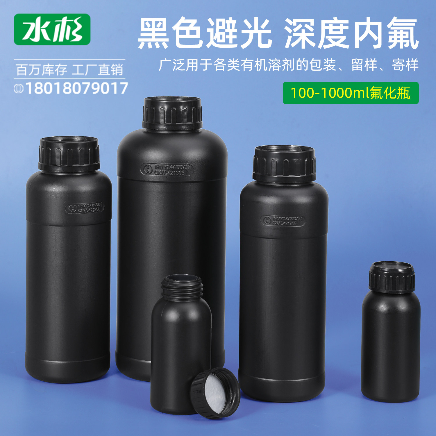 Избегайте легкой черной фторидной бутылки пластиковой бутылки Прочной растворитель химический вещество пустое бутылка 100/500/1000 мл мл