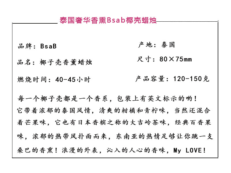 это не обычная ароматерапевтическая свеча. Это ароматерапия в стиле тайского стиля, которую можно использовать для увлажняющего молока и массажа; свечи BSAB изготовлены из соевых бобов,
