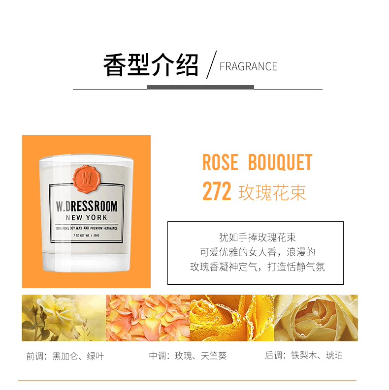 W.DRESSROOM Аромотерапия, парфюмированная свеча со стойким ароматом, долговременный эффект