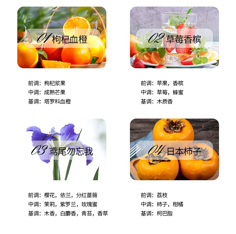 | Аромат: | Wolfberry Snow Orange, Клубничное шампанское, Радужная оболочка, не забывайте меня, Японские хурмы |