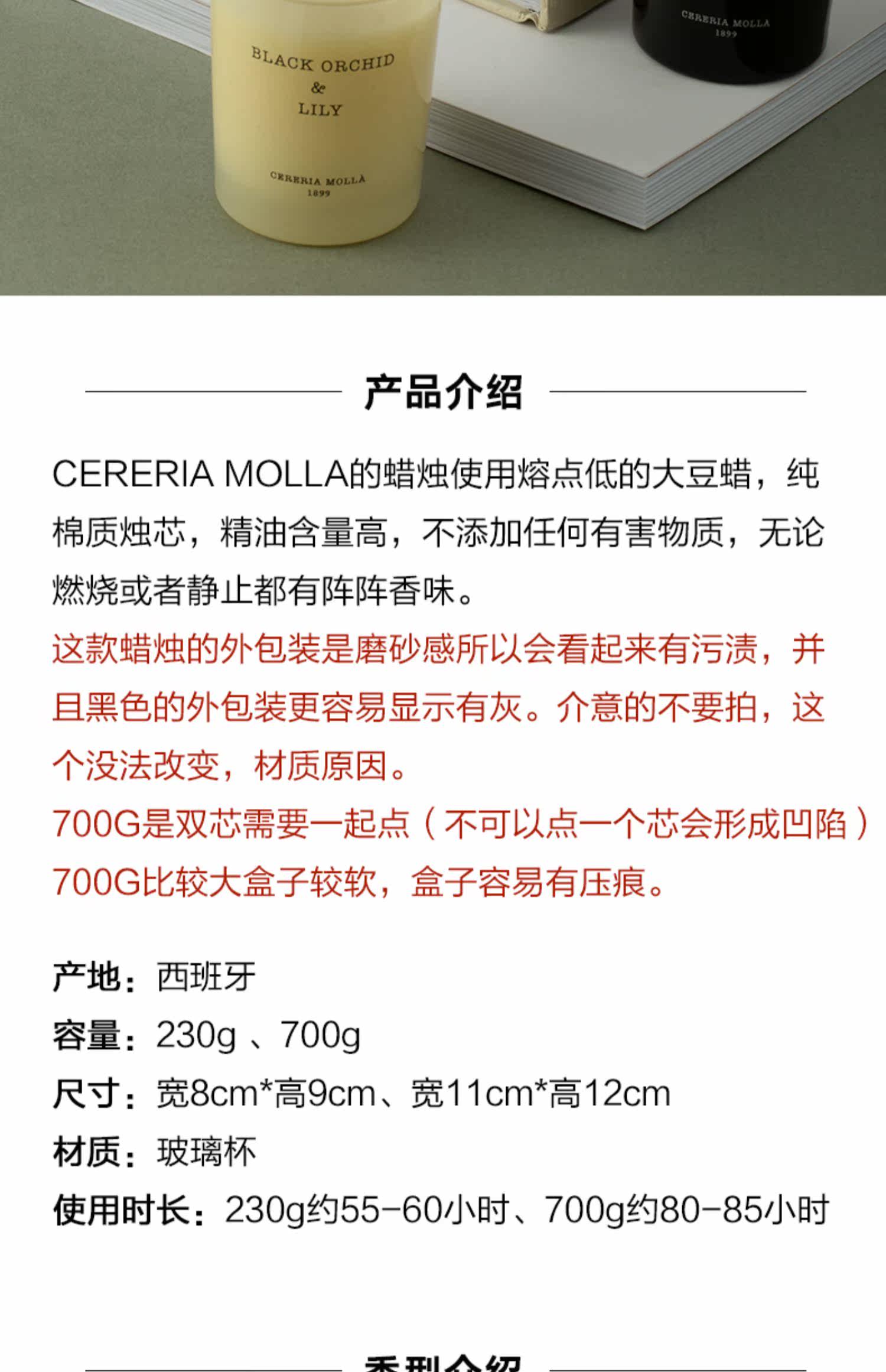 Испанский Cerria Molla 1899 Роскошная мора ручной работы эфирного масла ароматерапия свеча Большая фасоль воска 230G