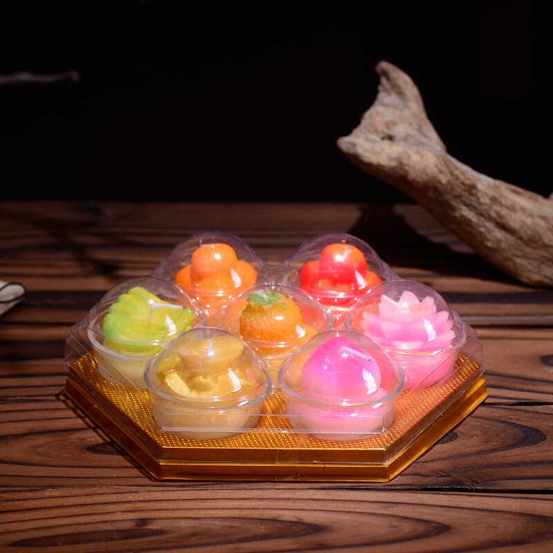 Для свечей будды лотосные свечи, призрачные лампы с фруктами с водой, ритуальная будда, фрукты, фрукты, свеча, благословение, желание лампы
