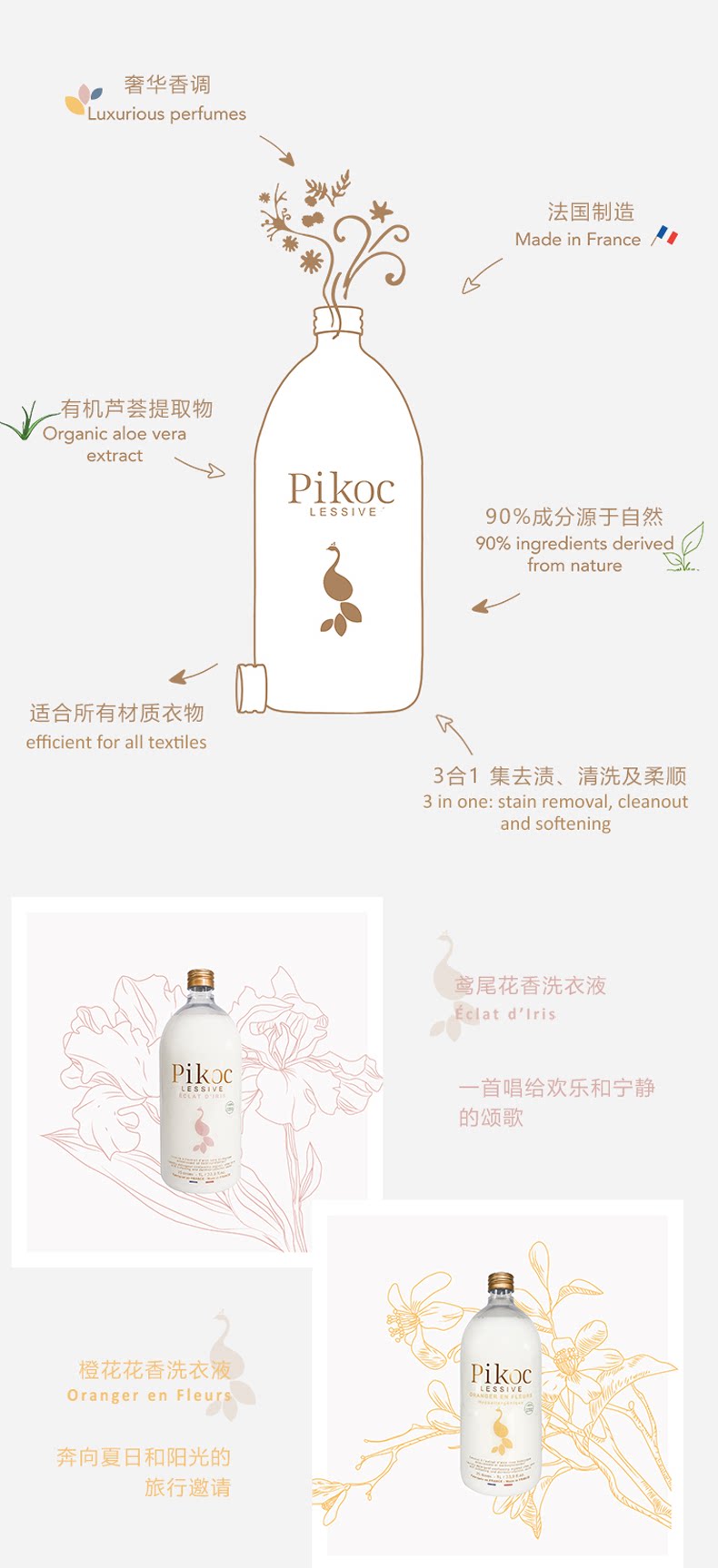 Антибактериальный ароматный стиральный порошок, натуральный гель алоэ вера, Франция