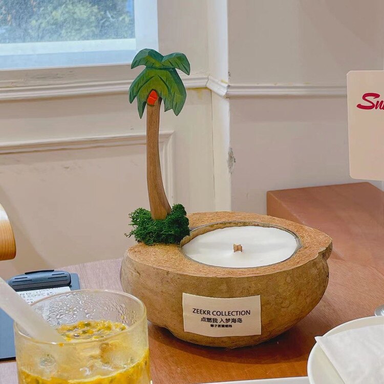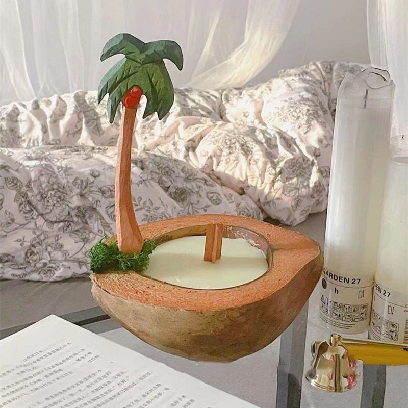 Ароматическая свеча из кокосовой раковины теплая и солнечная