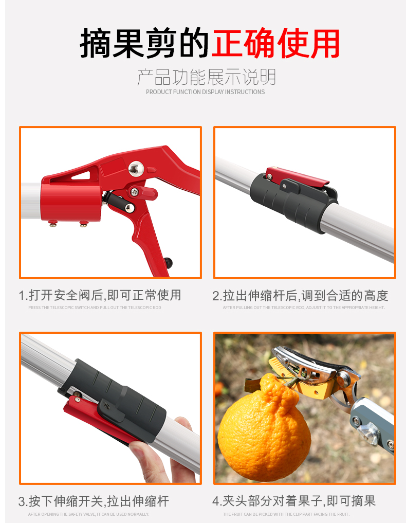 Сбор фруктов Jujube, каштановых драконов, ветвей фруктовых деревьев, ножниц, многофункциональных телескопических стержней, удлиняемых ветвей сдвиг