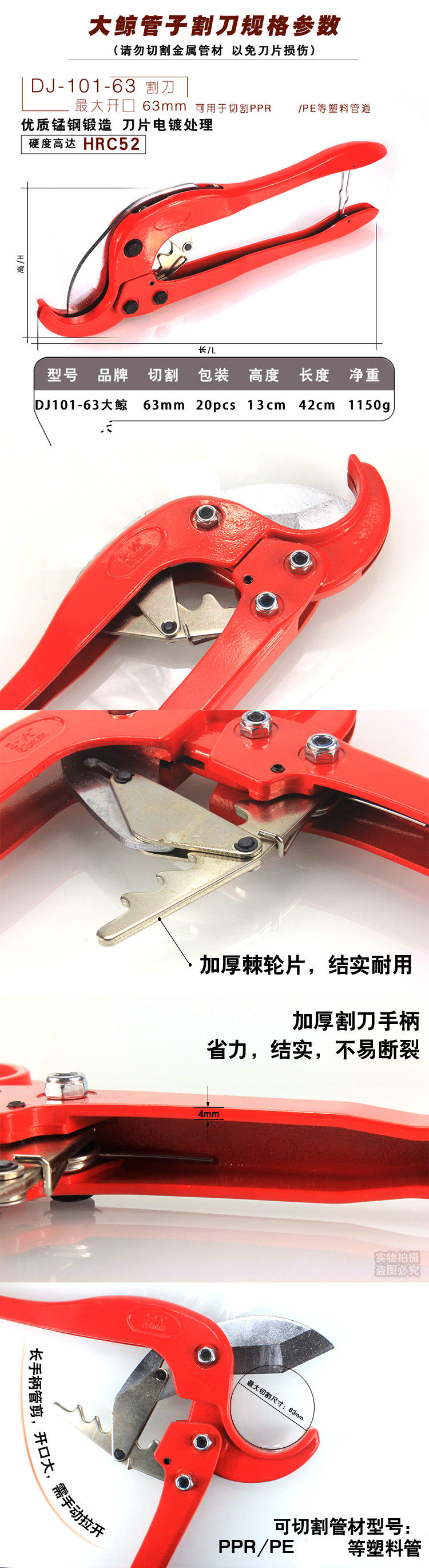 БЕСПЛАТНАЯ ДОСТАВКА PPR63 Крупные ножницы Большой калибра PE быстро -подготовитель