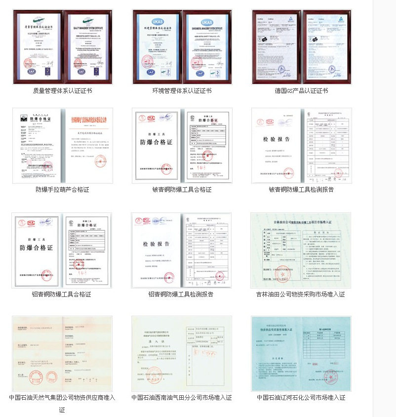 Наша компания произведенаВзрыв-защищенные инструменты соответствуют национальному стандарту GB10686-2013. Это национальный разрыв, защищенный от взрыва, стандартный проект. Продукт был создан, с высокой плотностью, без песчаных глаз, долгого срока службы.Обеспечение качества, на протяжении многих лет экспорта продукции 78 стран и регионов в мире, сохраняя отношения с крупным брендом в миреСущностьМы твердо верим, что выполнение взрывовнепроницаемых инструментов -это совесть, а несчастные случаи национальной безопасности неоднократно происходили.Мы вносим свою скудную силу для этого,Используйте качество продукта, чтобы предоставить пользователям пользователямГарантия сохранения.