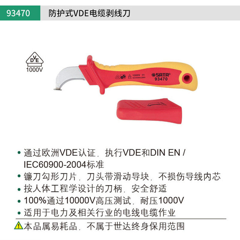 Инструмент Shida VDE Изоляционный кабель стриптизерша нож -кузовой изоляция изоляция электрический кабель.
