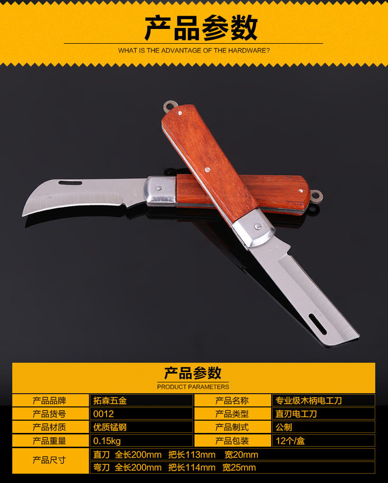 Бесплатная доставка, нож электрика с изолированной деревянной ручкой, прямой/изогнутый нож, нож для зачистки проводов, нож для кабеля, складной специальный инструмент для зачистки стали