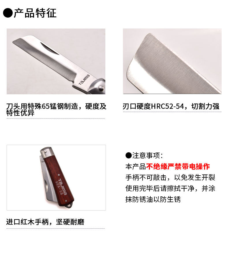 Tajima Temple Tool Деревянный ручка с электрическим ножом Прямой лезвие Dek-S8 Blade Blade Dek-B8 Складное электрическое нож