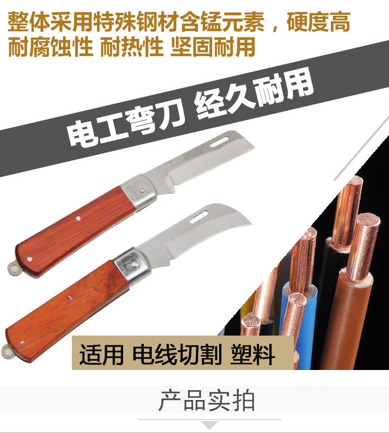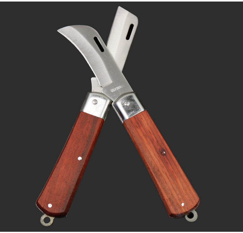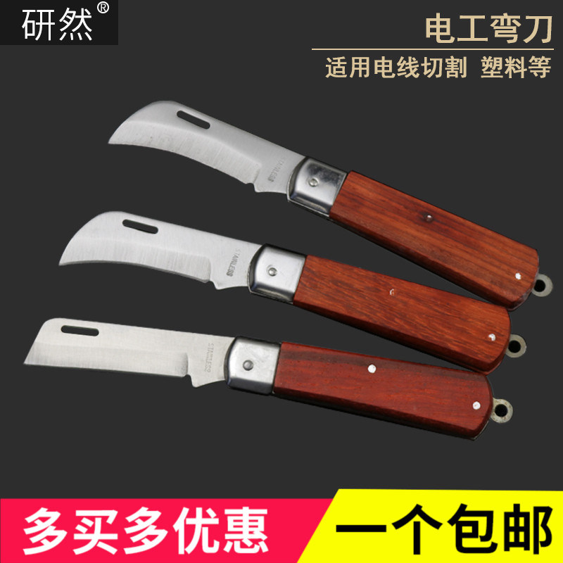 研然 Электрик -нож деревянный ручка с прямой линией мочевой пилинг складной складной кабель Многофункциональный провод с ножом