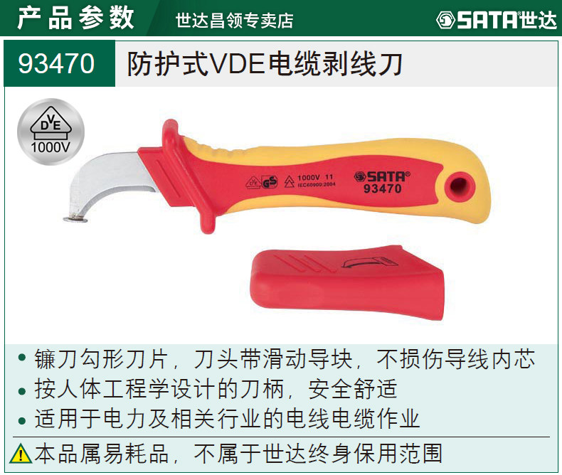 Шида погружение нож пить электрический нож VDE1000V Изоляционный кабель.