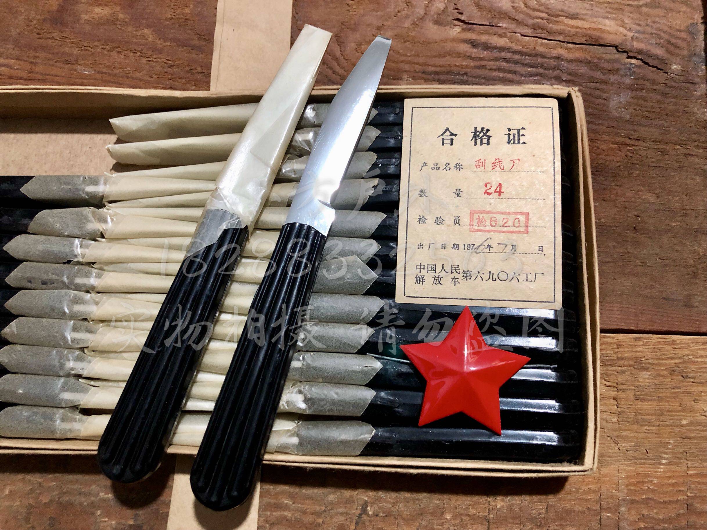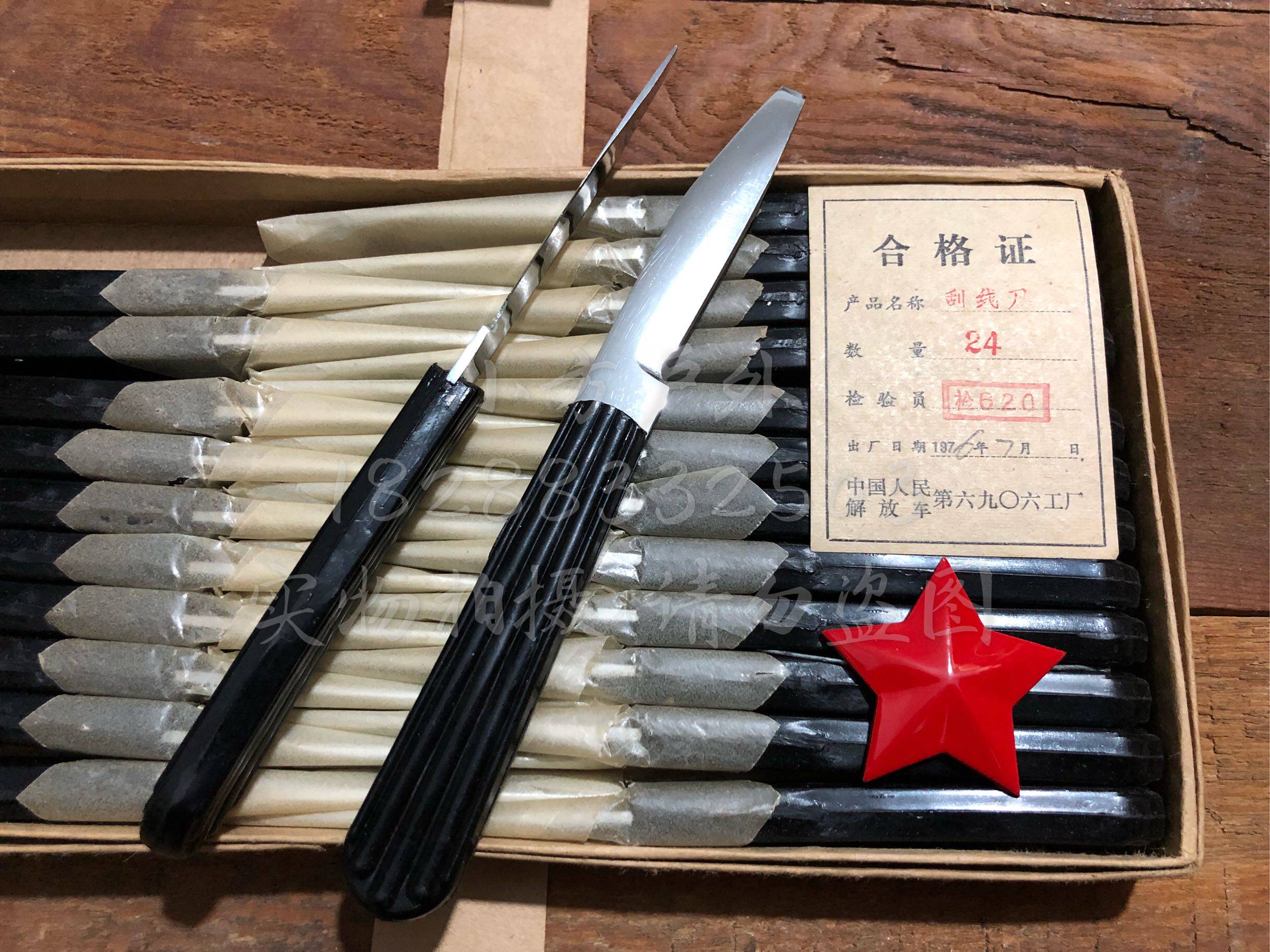 В 1976 году солдаты телекоммуникаций, ножи для инструментов, чайные ножи, винтовой нож многоподобный старый инвентарь старые товары, передняя часть плоской головки, можно использовать в качестве конуса слова, длина лезвия составляет около 7,5 см, полная Длина составляет 16,5 см, и ее нельзя сложить. В 1976 году сталь была очень хорошей. Твердость ранее более сильной руки была относительно тяжелой.