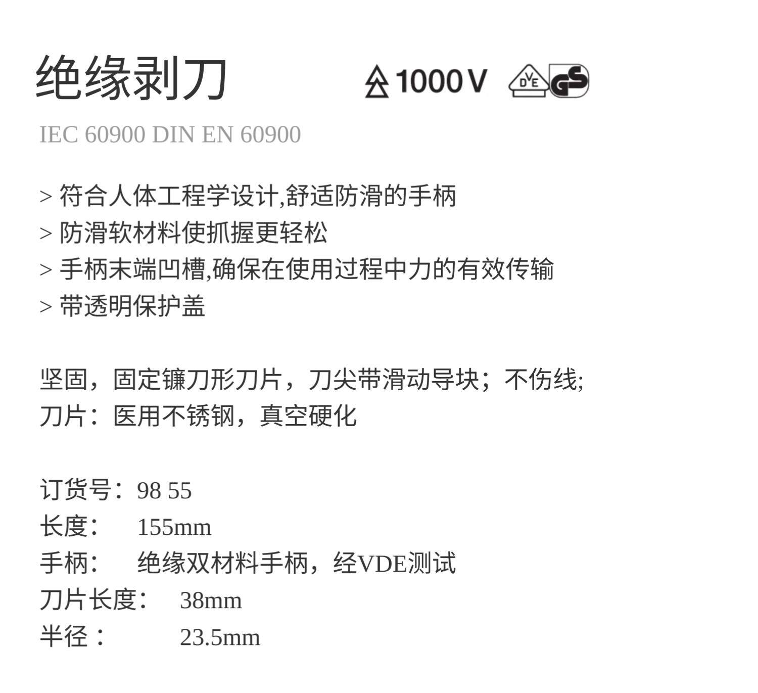Немецкий импортный Kenypark Knipex 1000V VDE Изолированный электрический проволочный стриптер 98 55 /9855