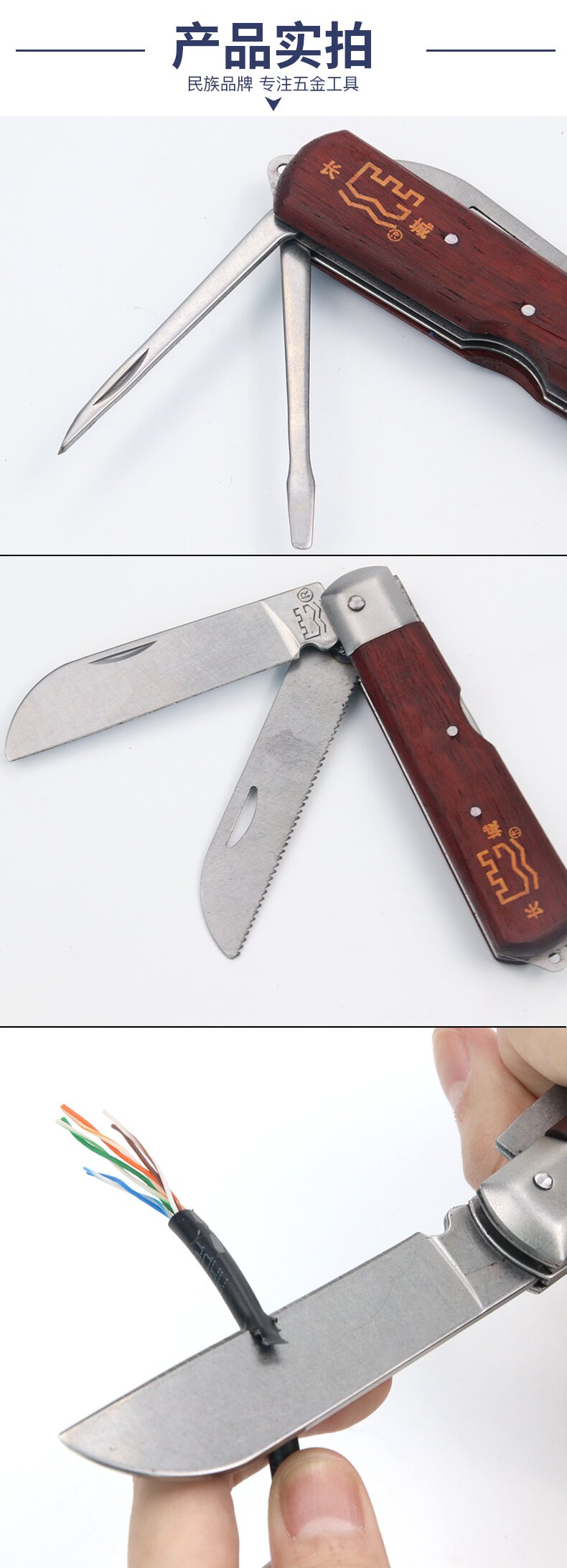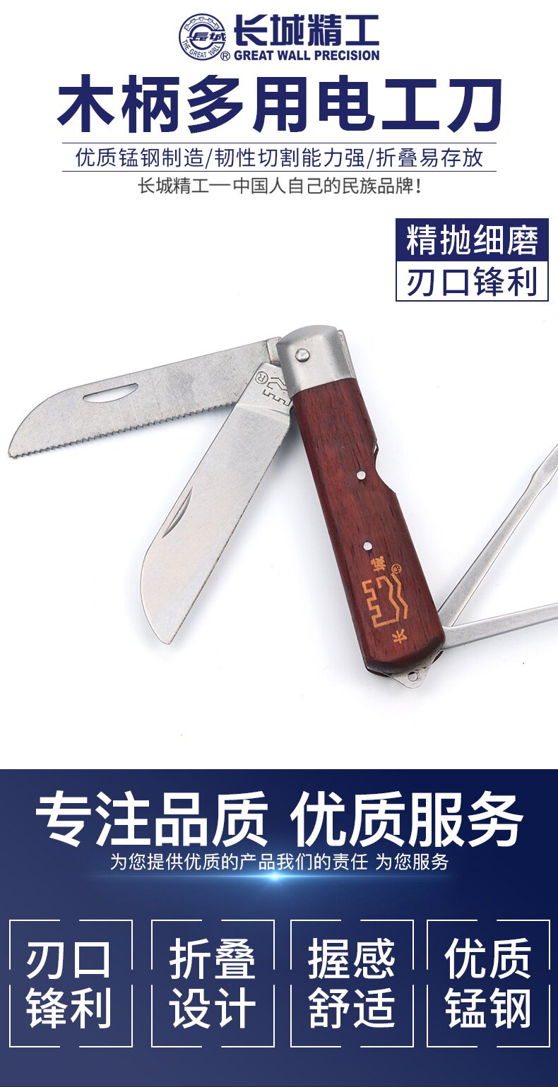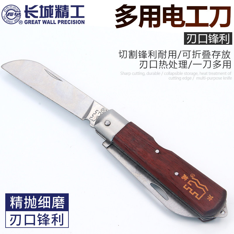 长城精工 Электрик -нож деревянный ручка Специальная стальная винтажная многофункциональная тяжелая промышленная складной инструмент Изоляция изоляция электрик Нож