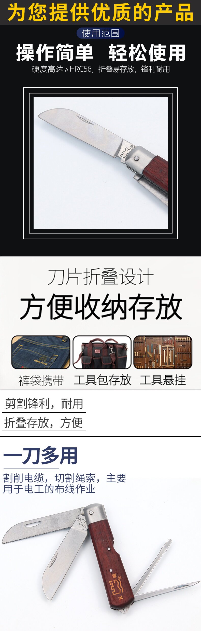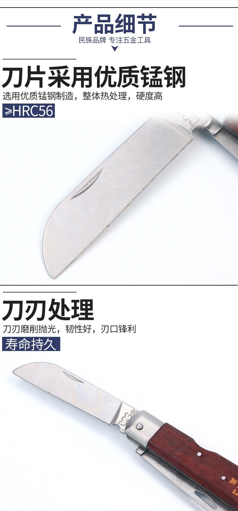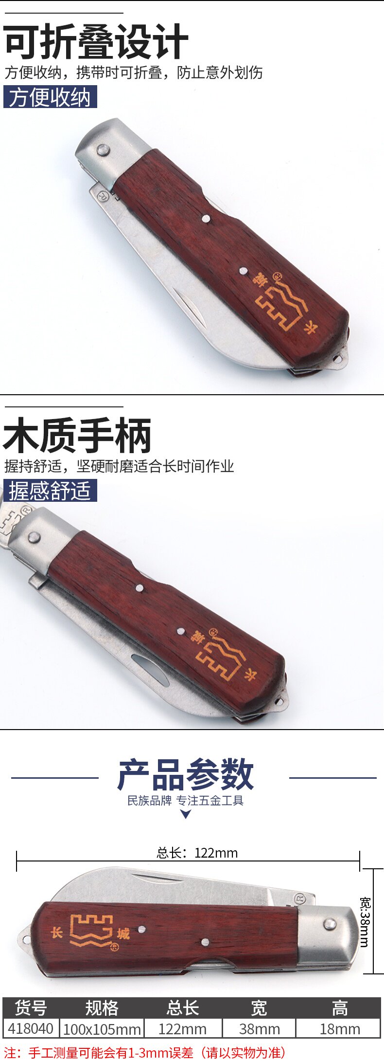 长城精工 Электрик -нож деревянный ручка Специальная стальная винтажная многофункциональная тяжелая промышленная складной инструмент Изоляция изоляция электрик Нож