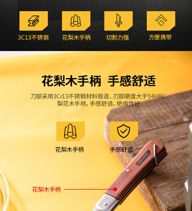 Деликатный инструмент Деревянный ручка Изоляция Прямо -кулинарная, изгибая лезвие электрическое нож
