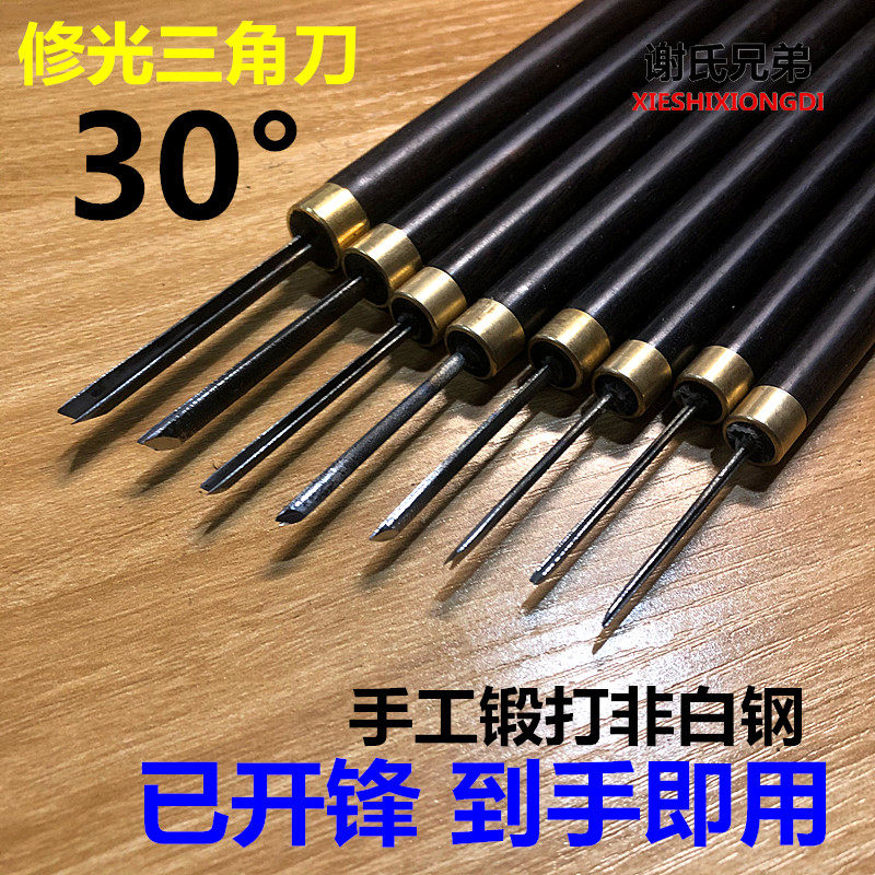 Треугольный нож для резьбы по сандаловому дереву 30 градусов, V-образный нож ручной работы с ручкой из полированного белого дерева, треугольный нож, ручка из фиолетового сандалового дерева, нож для резьбы Dongyang