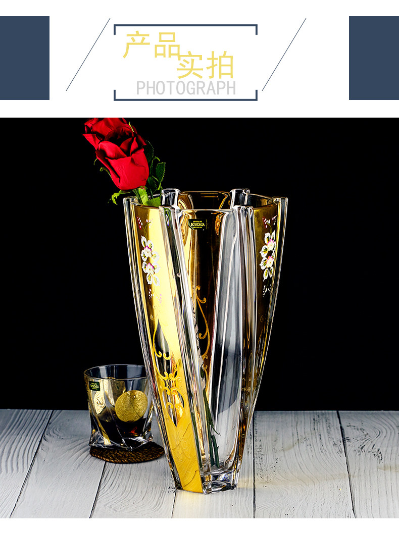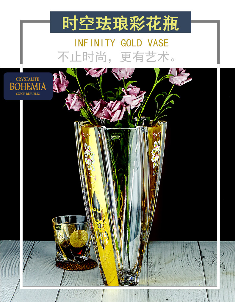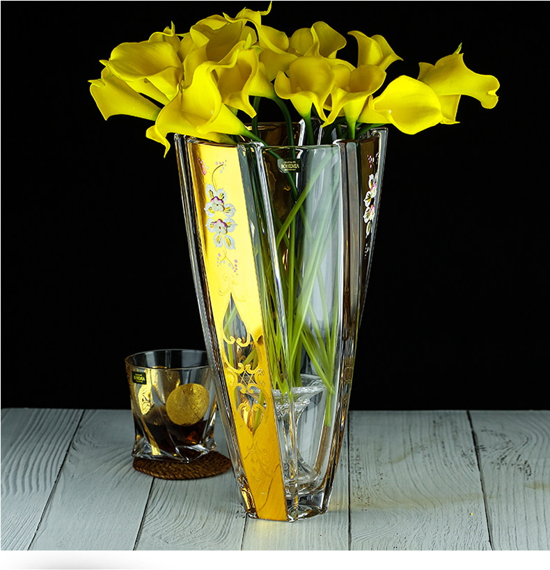 Чешский импорт Bohemia Crystal Glass Vase Simple European -стиль 22K настоящий золотой тракт золотой тракт