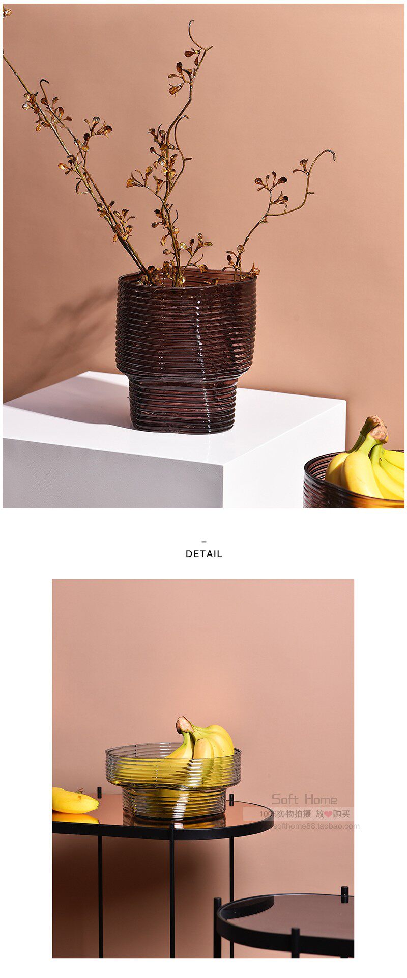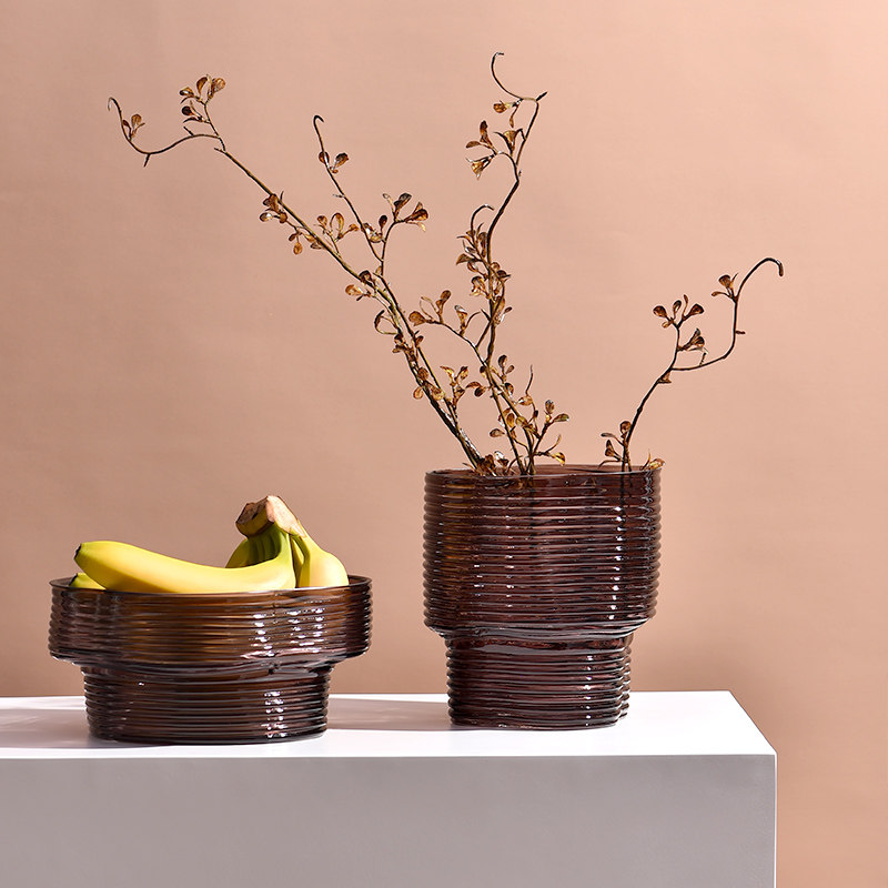 Современная простая стеклянная ваза, подходящая для домашней обстановки в скандинавском стиле. Креативный высокий коричнево-фиолетовый цветочный сосуд. Украшение тарелки с фруктами для гидропонной гостиной.