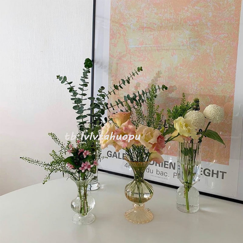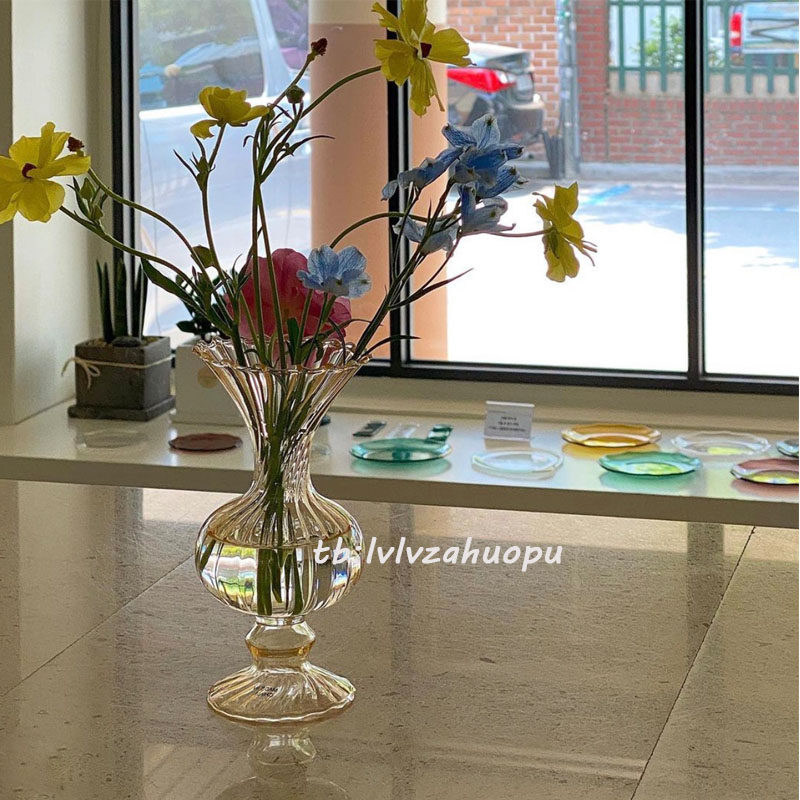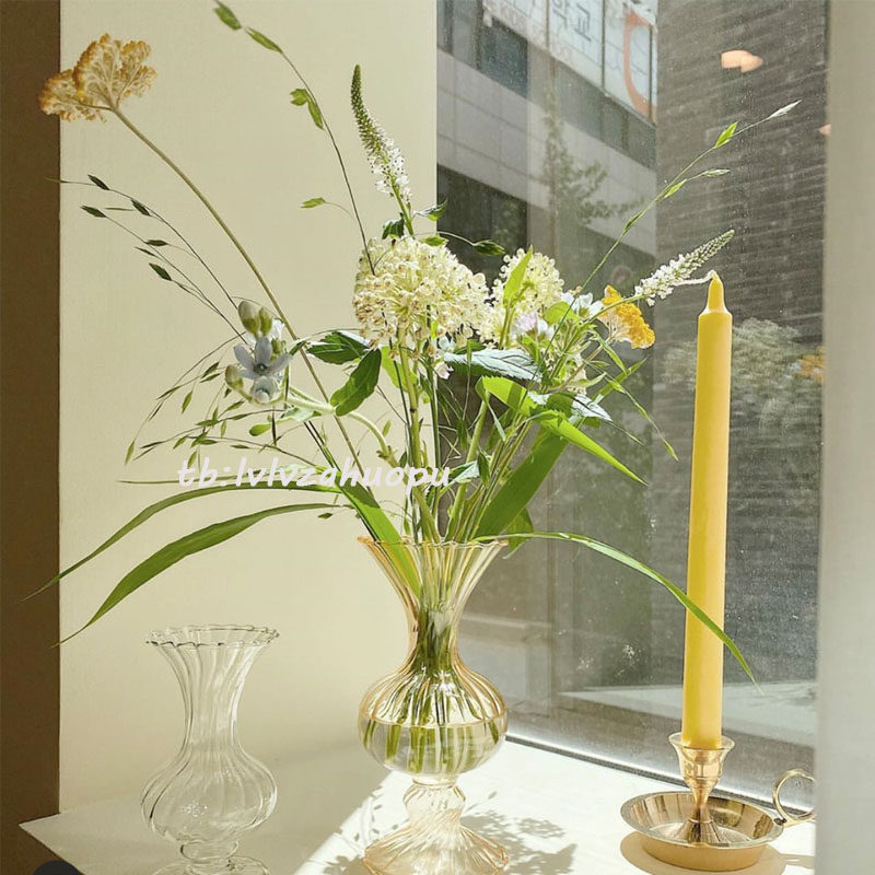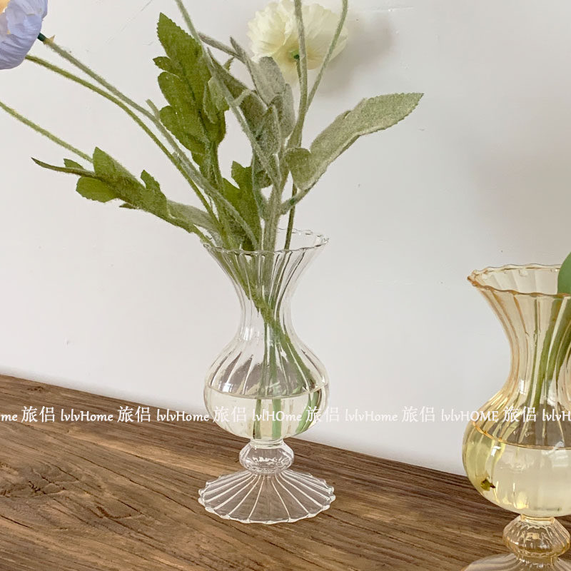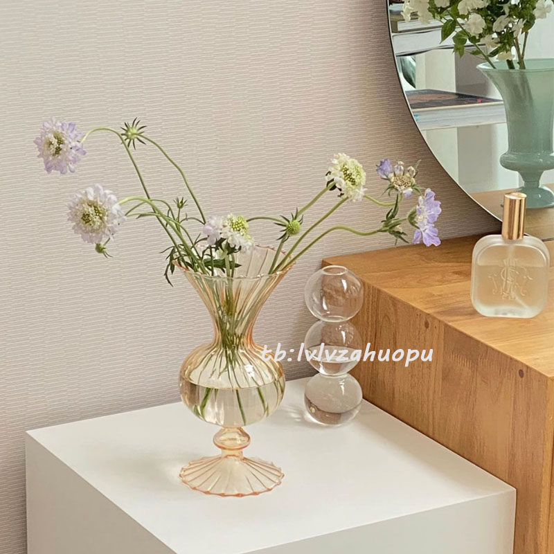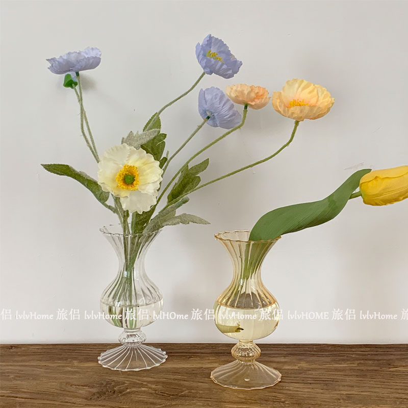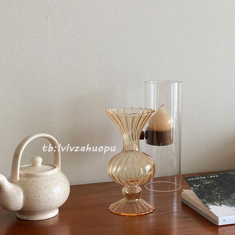 Ретро янтарные стеклянные цветочные композиции в форме цветка, маленькая вазочка, домашний декор