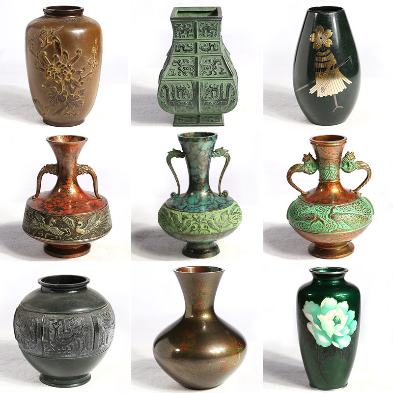 Японская бронзовая ретро -ретро -медитация китайский цветочный расположение суда декоративные цветочные посуды.