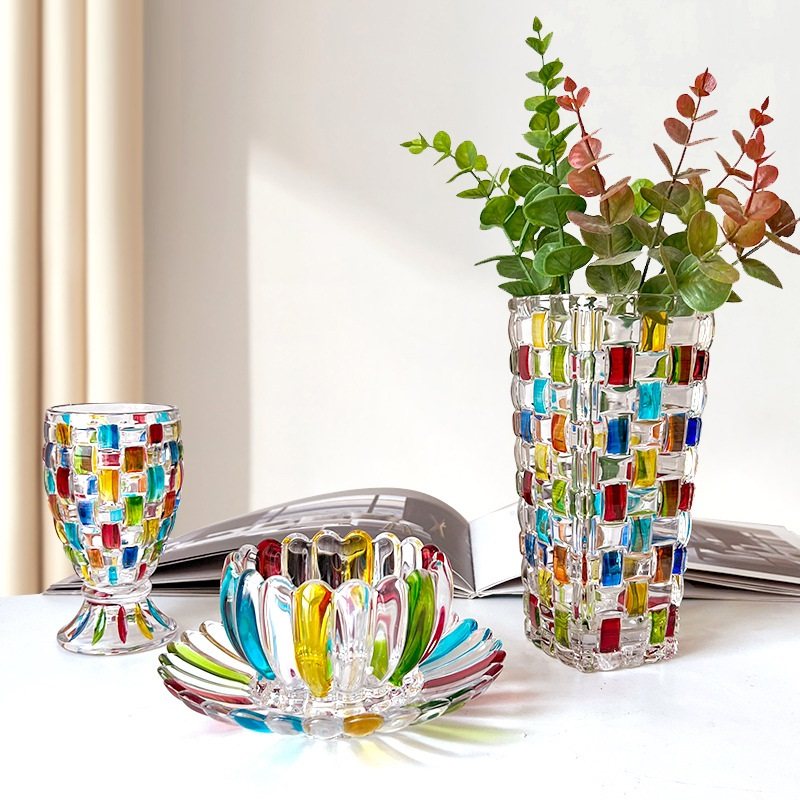 Стеклянный плетеный окрашенный стакан для виски, бокал, ручная роспись