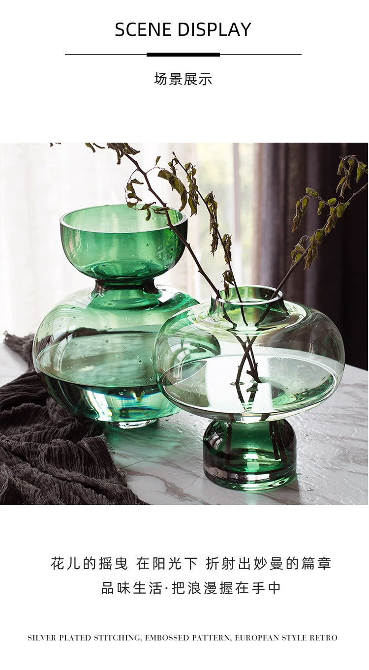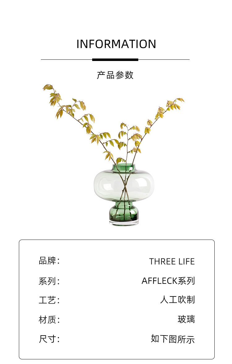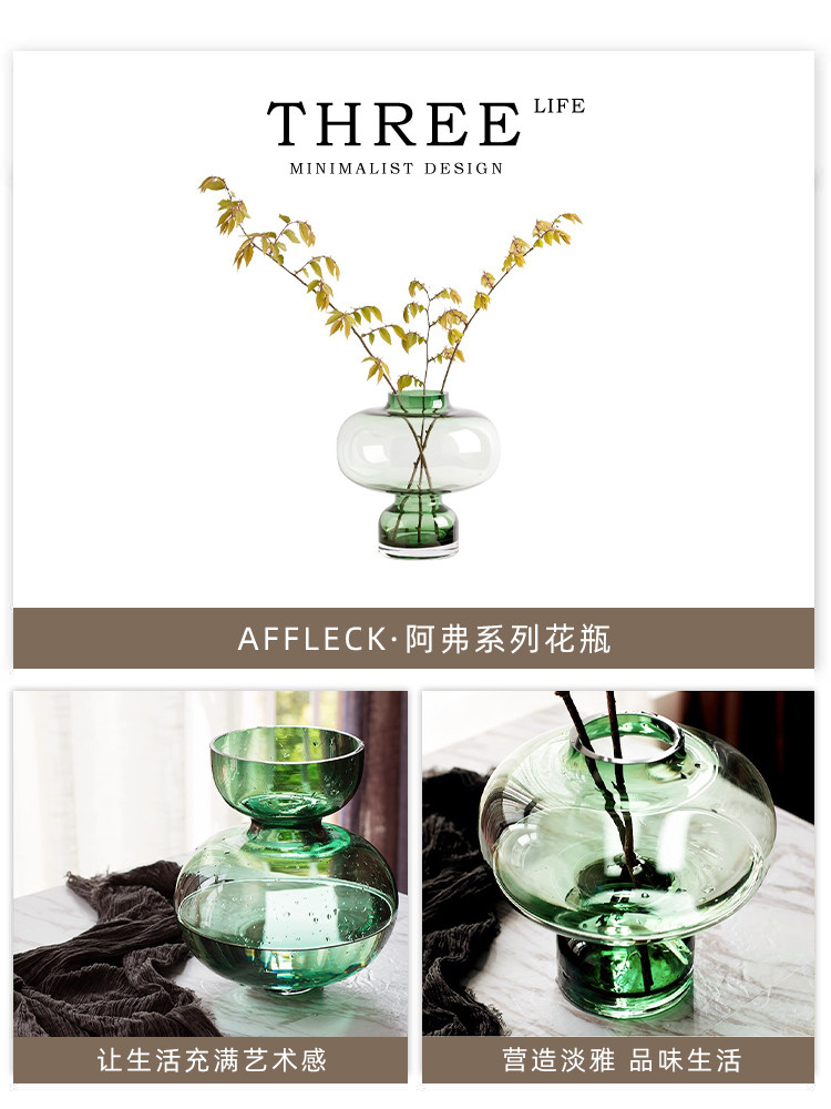 Tlife · Affleck · Vase of Nordic Green Glass Flower Creative Modern Living Swing | Ах
