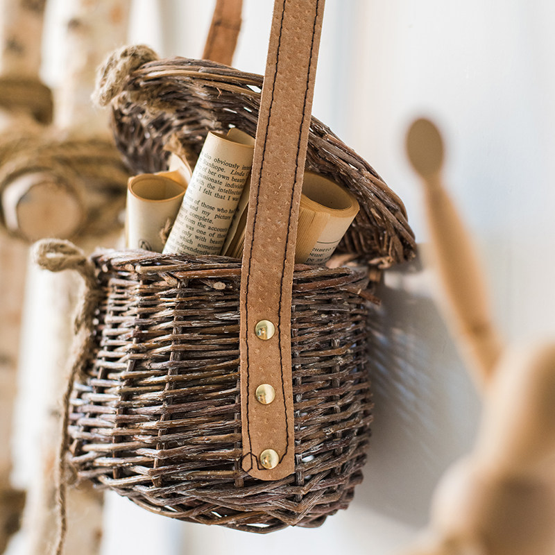 掬涵 Антикварная сумка, корзина, декоративные цветы, модная натуральная система хранения