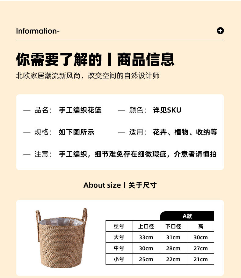 Соломенный цветочный горшок, плетеная корзина, простой и элегантный дизайн