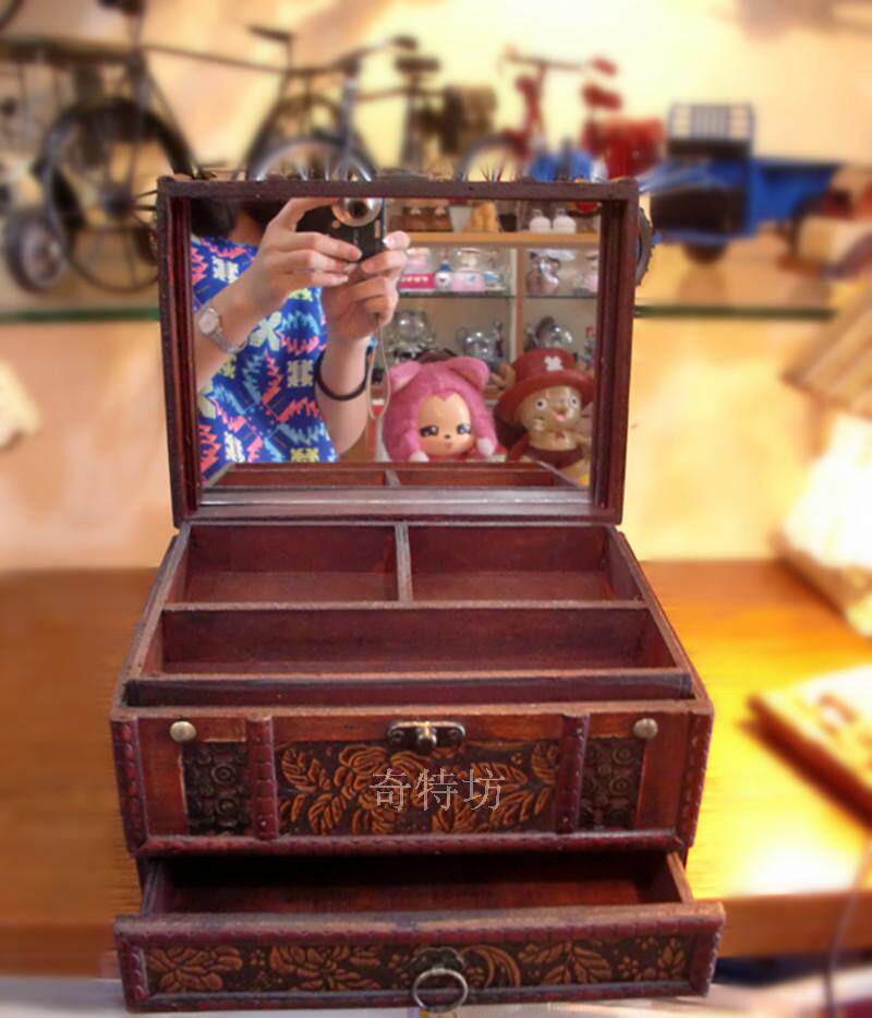 Креативная деревянная антикварная ретро коробочка для хранения, коробка для косметики, аксессуар