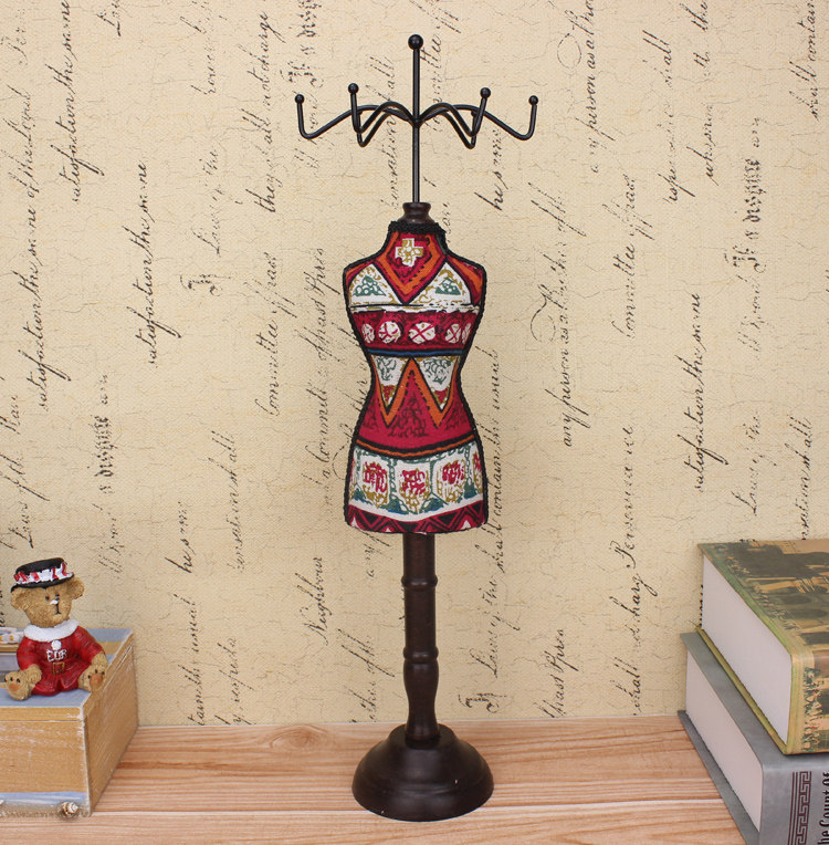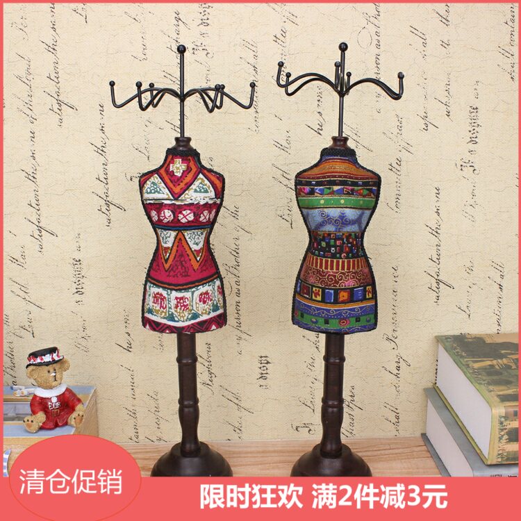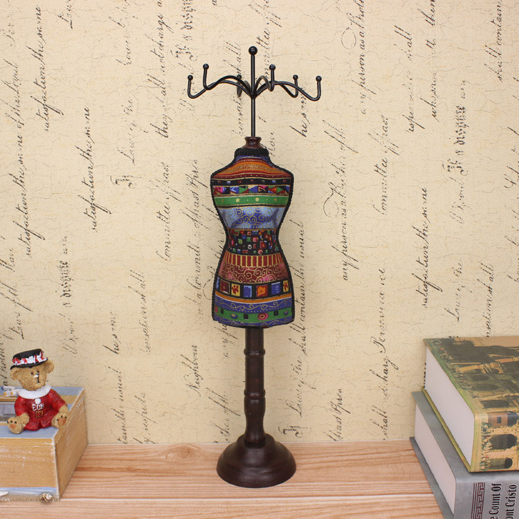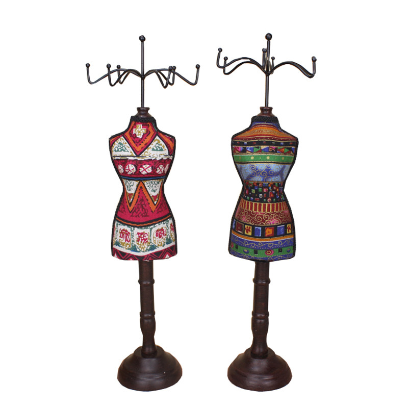 Ретро туалетный столик, манекен головы из натурального дерева, ожерелье, серьги, настольный стенд
