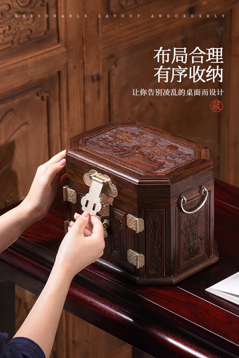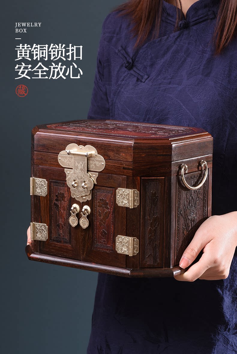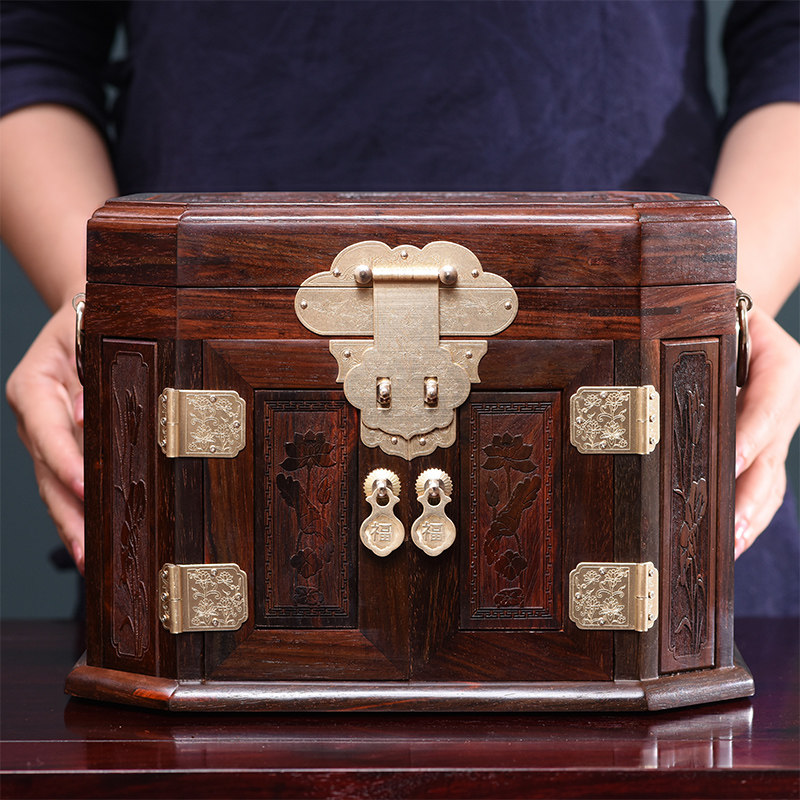 Шкатулка для драгоценностей из лаосского палисандра в китайском стиле, шкатулка для сокровищ из цельного дерева в стиле ретро, туалетный столик из красного дерева, свадебный ящик для хранения с замком