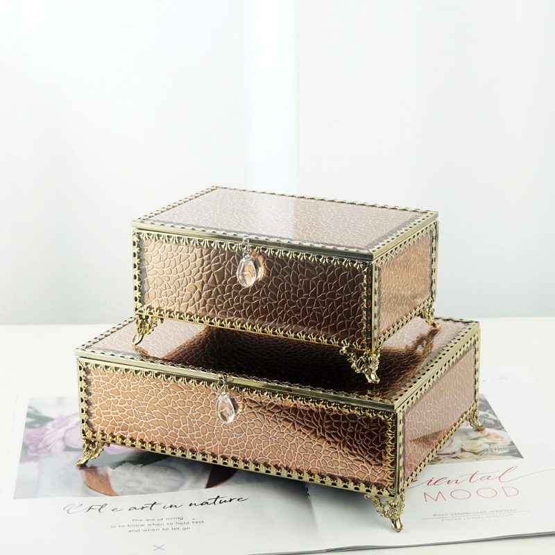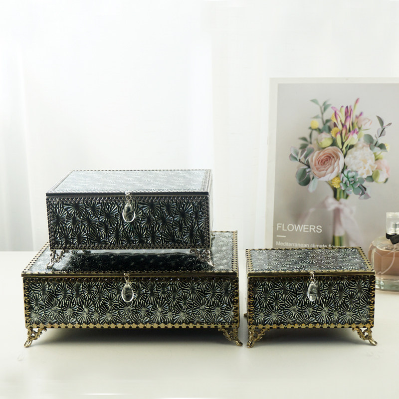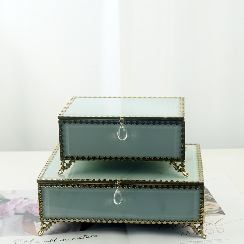 Ретро прямоугольная коробочка для хранения, стеклянная коробка для хранения, ювелирное украшение, серьги, европейский стиль