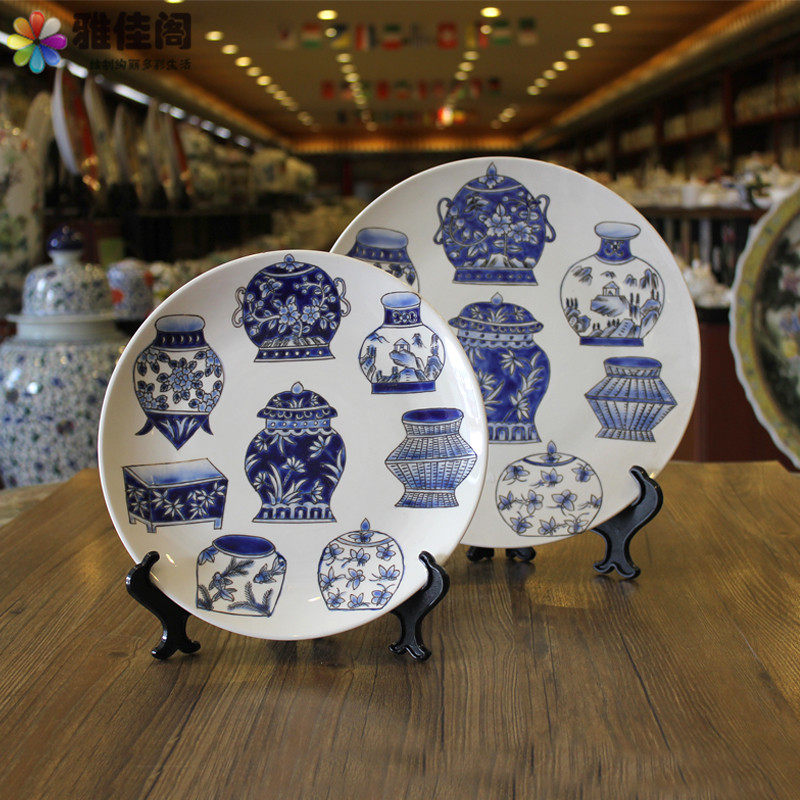 Современная китайская сине -белая фарфоровая керамическая декоративная тарелка качающаяся стена висящая тарелка тарелка на тарелку домашние украшения декоративная картина