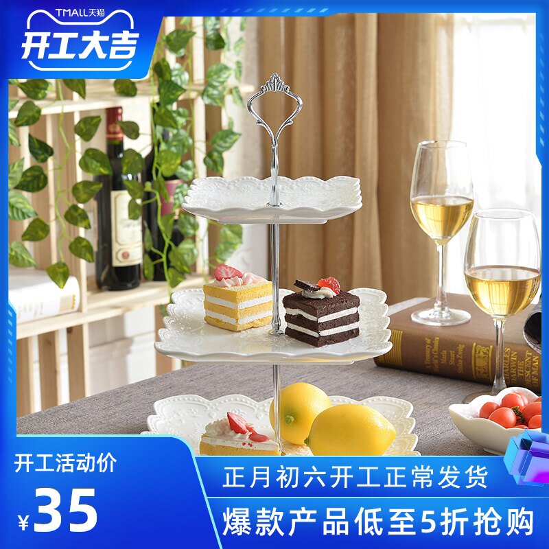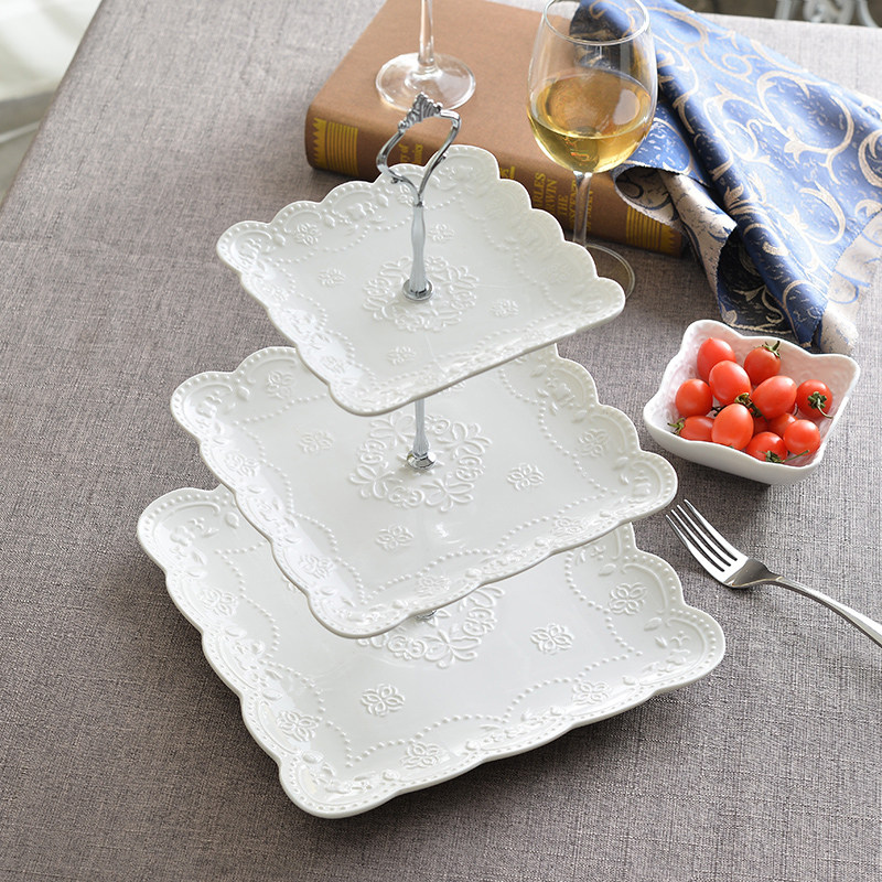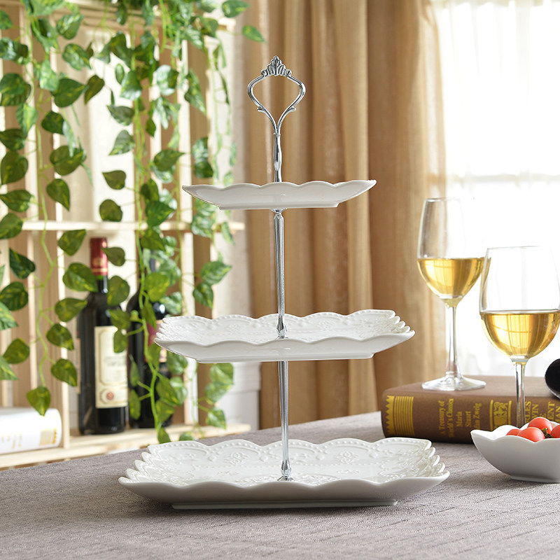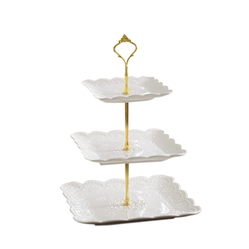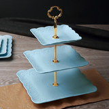 Европейская стиль модная керамическая керамика Сифанга фруктовая тарелка торт тарелка послеобеденной чай закуски с тремя слойной тарелкой творческая свадебная пластинка