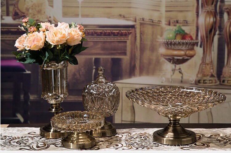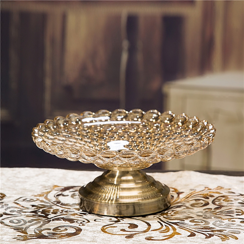 Европейский стиль хрустальный стеклянный фруктовый пластинка творческая роскошная роскошная высокая высокая точка большего фруктового бассейна Hyundai Simple Living Home -Home -Footed Water Disk