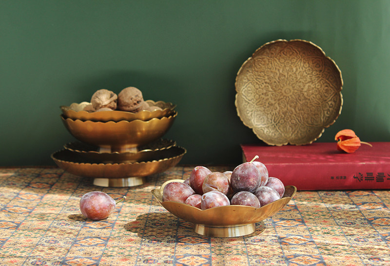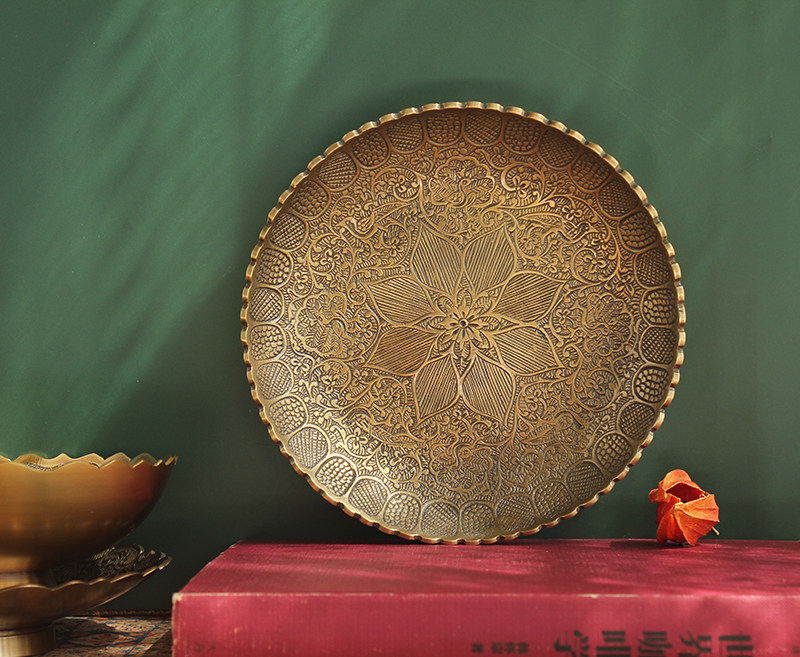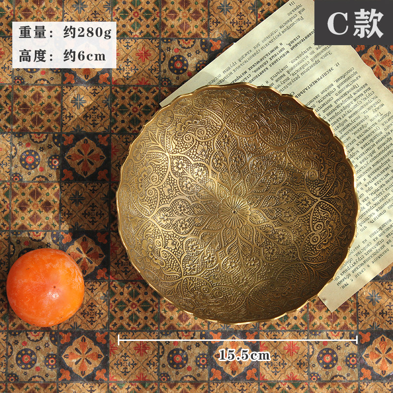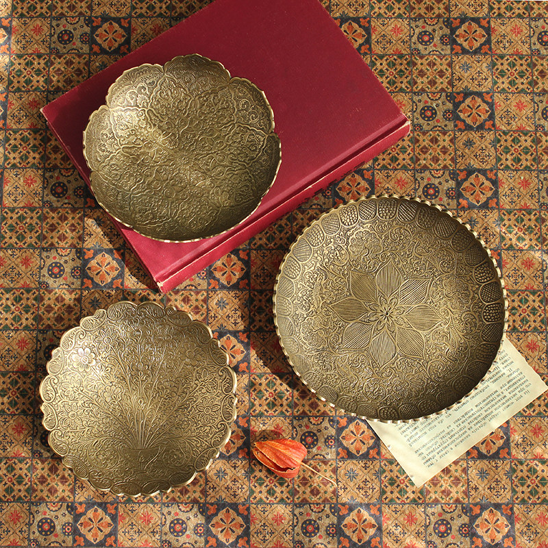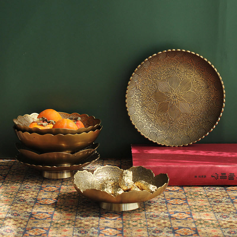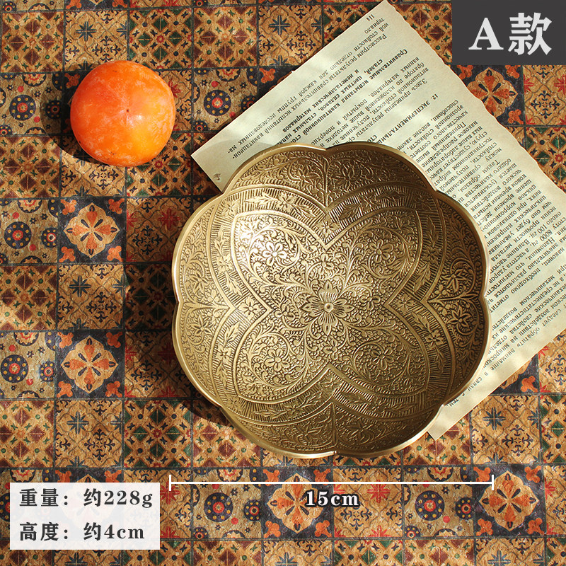 Импортная чистая бронзовая фруктовая тарелка ретро -рисунок с закусочной конфетки ключ маленькая тарелка легкая роскошная рельеф