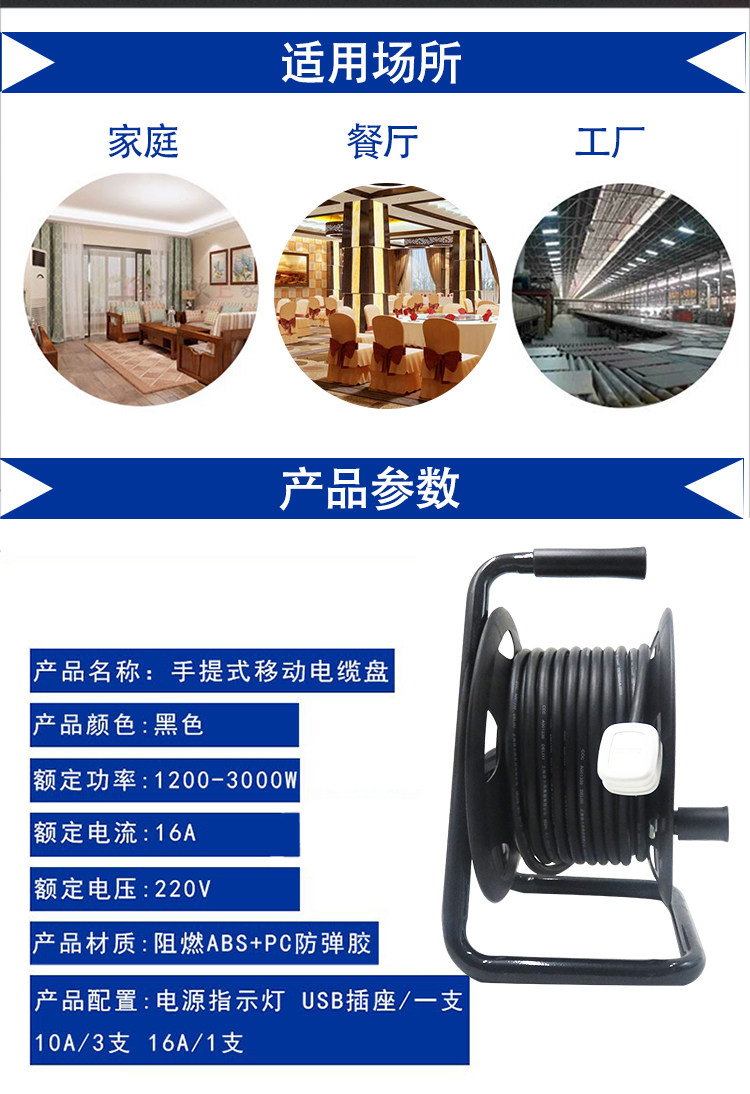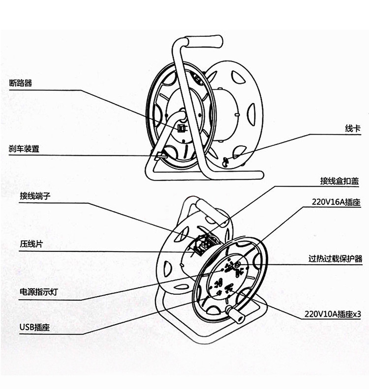 Delixi Mobile's Difting Cable Disk Roll Line с USB 220V 10A/16A -зарядка